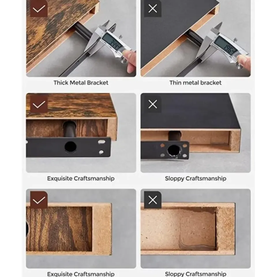Zet uw lievelingsdecoratie in de kijker: liggen uw familiefoto’s nog verborgen in een lade? Haal ze eruit en geef ze een ereplaats! Deze wandplank (40 cm lang, kan tussen 10 en 15 kg dragen) is een stijlvolle manier om uw foto’s, boeken, decoratieve voorwerpen, cd’s, kruiden, enz. tentoon te stellen. Een echte blikvanger: de zwevende plank in vintage bruin dient niet alleen om uw accessoires op te bergen, maar is zelf een unieke decoratie in uw vier muren. Of het nu in de woonkamer, slaapkamer, hal of keuken is, de wandplank zal iedereen opvallen. Voor een stabiel houvast: Hoewel een aantrekkelijk uiterlijk belangrijk is, tellen ook de innerlijke waarden. Daarom hebben wij zo’n stevige wandplank ontworpen, gemaakt van hoogwaardig MDF. U zult er dus nog vele jaren van kunnen genieten. De montage loopt op rolletjes: Gemak bieden in uw dagelijks leven is ons stokpaardje! De gemarkeerde onderdelen en gedetailleerde instructies maken het gemakkelijk om de zwevende plank in elkaar te zetten en u heeft maar een paar stappen nodig om hem in elkaar te zetten. Wat je krijgt: Een stijlvolle wandplank die gemakkelijk aan de muur te bevestigen is, en een manier om je kamer op te fleuren! Dus trakteer jezelf op deze kleine plank en verfraai lege muren in je huis