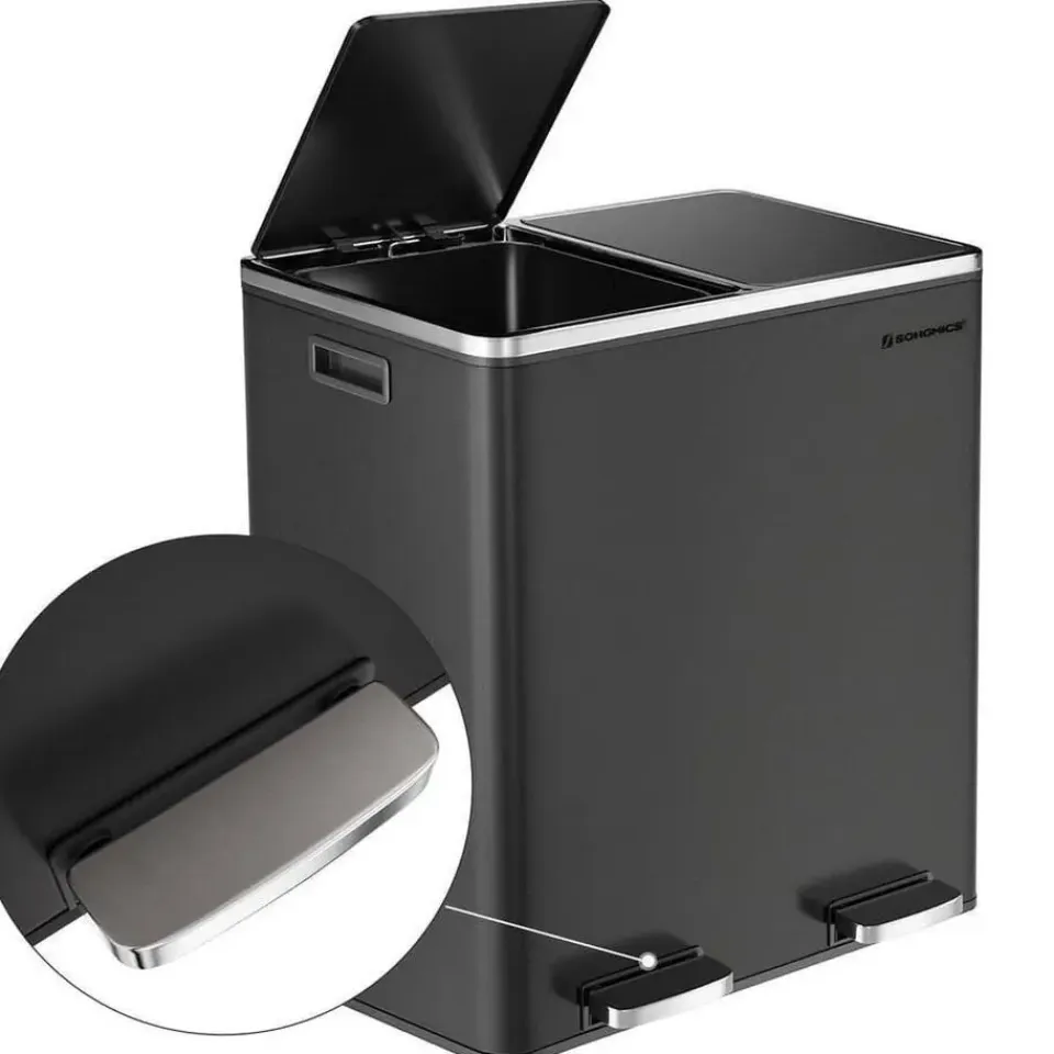 De pedaalemmer is uitgerust met pedalen die gemakkelijk en hygiënisch kunnen worden geopend, en heeft 2 binnencontainers, zodat u uw afval apart in bakken kunt gooien – afval verwijderen en sorteren een fluitje van een cent!