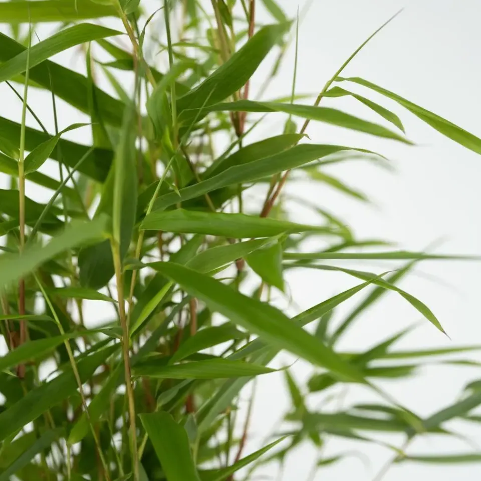 De Fargesia Rufa komt oorspronkelijk uit China en is zeer eenvoudig in onderhoud. De bamboe plant is groenblijvend, winterhard tot -20 en niet woekerend. Een ideale tuinplant dus! Deze gunstige eigenschappen maken de Fargesia Rufa tot de meest verkochte bamboe van Europa. De maximale hoogte van de Fargesia Rufa is 3 meter. Dit maakt de plant ook geschikt om een mooie dichte haag mee te creëren. De Fargesia Rufa behoud het hele jaar door zijn blad en geeft een echte oosterse sfeer aan je tuin.