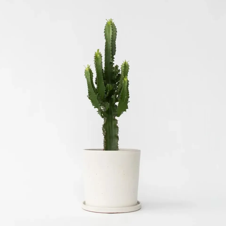 De Cowboy Cactus is ongelooflijk populair en is vaak de ster van interieurblogs en sociale media. Instagram en Pinterest kunnen niet genoeg krijgen van de Euphorbia! Beter nog, de plant past ook bij jouw drukke moderne levensstijl – deze zuilvormige kamerplant heeft vrijwel geen onderhoud nodig. Officieel is de Euphorbia Eritrea geen cactus maar een vetplant. Echter lijkt de plant veel meer op een traditionele cactus.