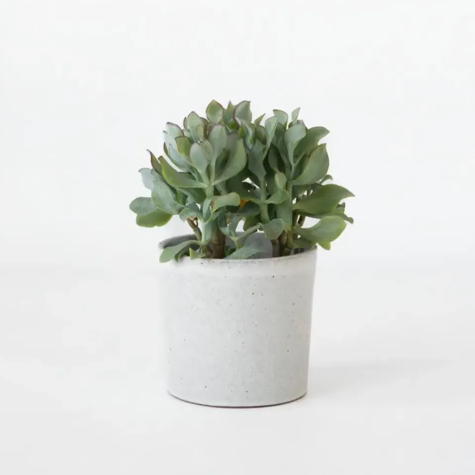 Crassula arborescens ‘Curly’ geeft de voorkeur aan een lichte standplaats met veel indirect zonlicht. Een plekje bij een raam op het zuiden of westen is ideaal. Te weinig licht zorgt voor een slungelige groei, terwijl direct middagzonlicht in de zomer de bladeren kan beschadigen. Gebruik goed doorlatende cactus- of vetplantengrond en zorg voor een pot met drainagegaten. Laat de aarde tussen de gietbeurten volledig uitdrogen – de dikke bladeren slaan voldoende water op om droge periodes te overbruggen. In de winter heeft deze vetplant nauwelijks water nodig.