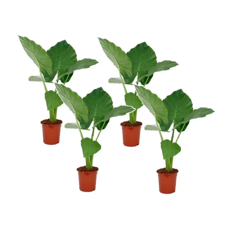 De Alocasia ‘Macrorrhiza’, ook wel olifantsoor genoemd, komt oorspronkelijk uit de tropen van Azië. Deze enorme trendy kamerplant is in bijna iedere urban jungle te vinden! Met deze Alocasia haal je een tropische kamerplant in huis met bijzonder grote bladeren. De bladeren van deze plant kunnen een breedte van wel 60 centimeter krijgen! Uit de kern van de plant groeit telkens één nieuw blad kaarsrecht omhoog. Waarna het openvouwt en naar beneden zakt. Hierdoor varieert zowel de hoogte als de breedte van de plant constant. Houd er rekening mee dat de Alocasia aardig wat ruimte nodig heeft en zet de kamerplant op een plek waar die de hoogte en de breedte in kan groeien.