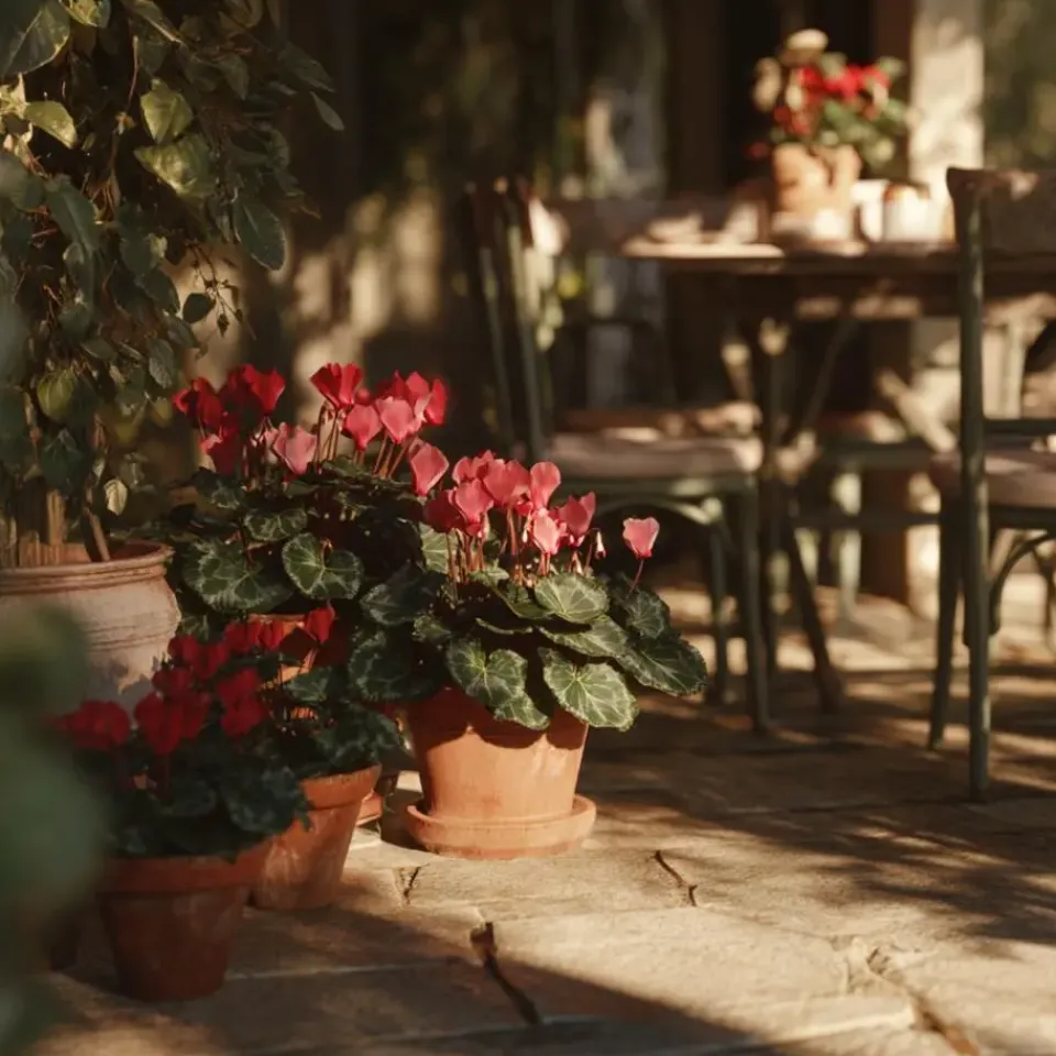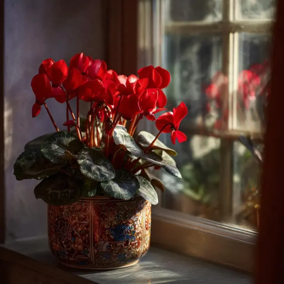 Cyclamen persicum vereist matige verzorging. Met een goede locatie en regelmatige slokjes water kom je al een heel eind. Plaats of hang uw cyclamen niet op een te warme of zonnige plek, dus niet boven een verwarming of in de volle zon, ze geven de voorkeur aan koelere dan warmere plaatsen. De ideale temperatuur voor de plant is 15 graden. Plant ze niet te dicht bij elkaar; een beetje lucht tussen de bladeren is prettiger. In de zomer lust een cyclaam elke dag een slokje water. In de winter hoeft u minder vaak water te geven. Zorg ervoor dat de grond altijd licht vochtig is.