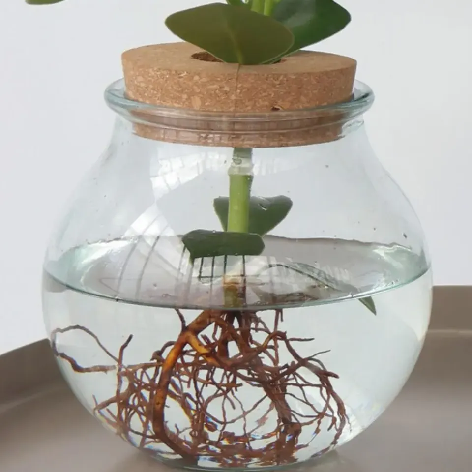 Hydroponie is een van de nieuwste plantentrends. Bij hydroponie staan de wortels van de plant in water in plaats van in de grond. Hierbij geniet je niet alleen van de bijzondere plant maar kun je ook de wortels van alle kanten zien groeien. Bovendien zijn hydroponie planten zeer onderhoudsvriendelijk. Het enige dat je namelijk hoeft te doen is het water zo nu en dan (bij voorkeur eens in de twee weken) te verversen. Deze prachtige hydroponie plant wordt kant en klaar geleverd, inclusief bolglas vaas en kurk. Het enige dat je hoeft te doen, is water toevoegen. En een mooi plekje uitzoeken natuurlijk!