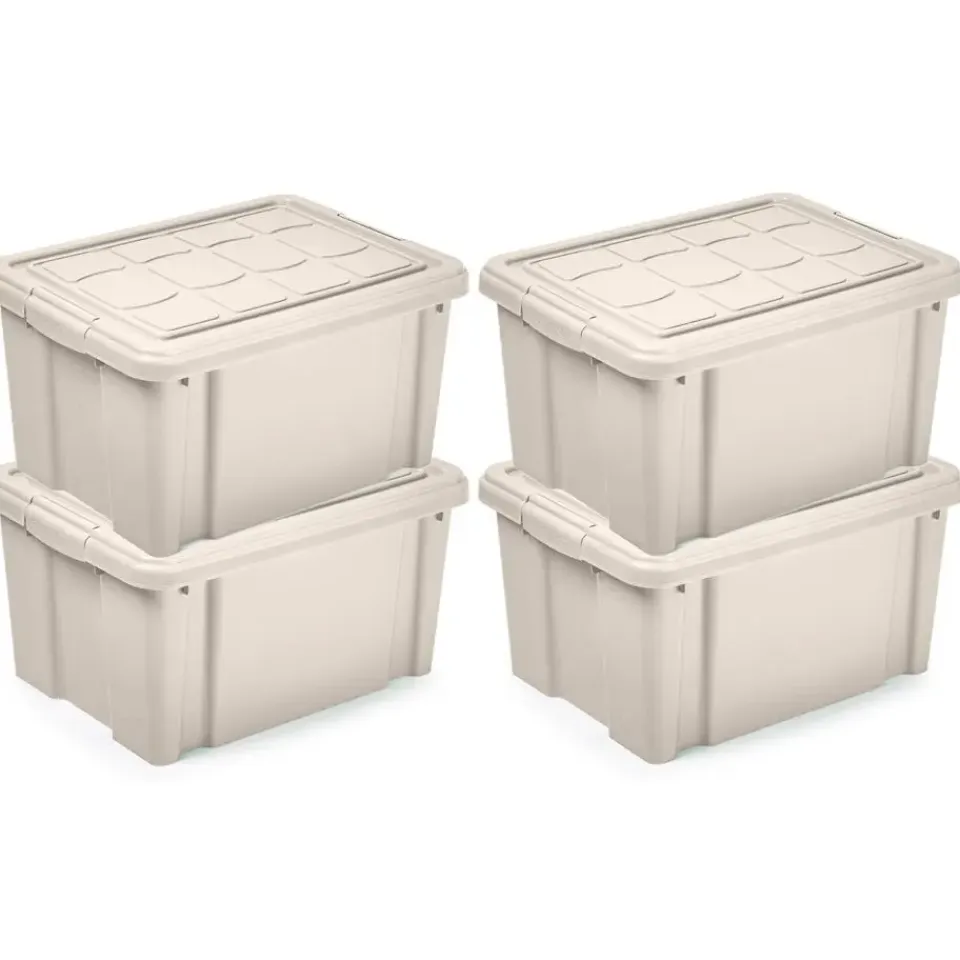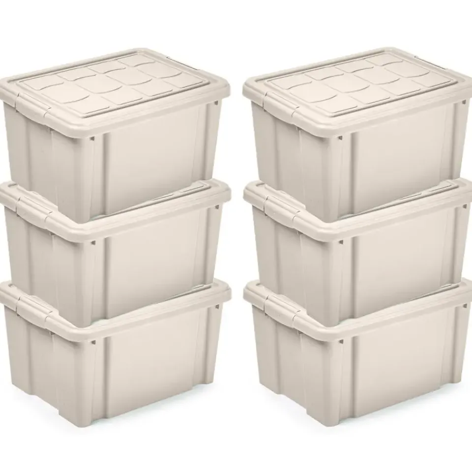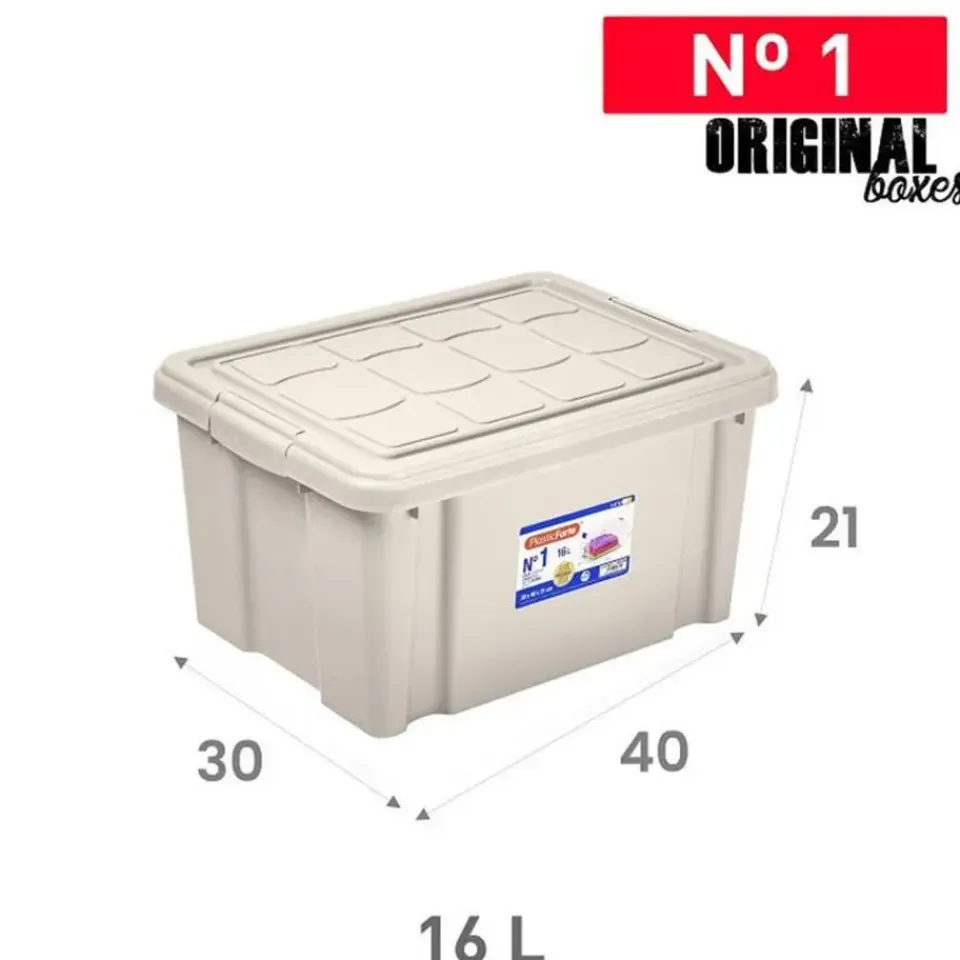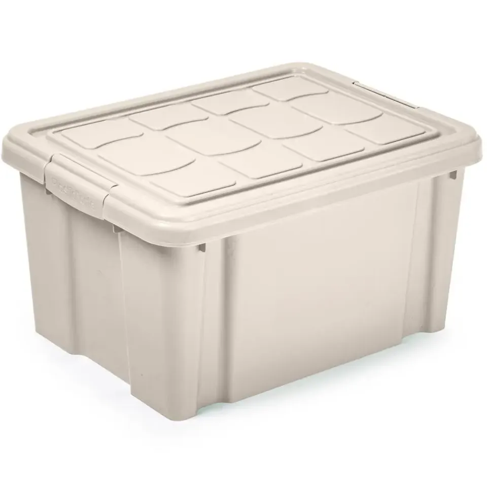Opslagbox/kist met zijklem deksel met een inhoud van 16 liter. De opslagbox / opbergbox is in de kleur beige en is gemaakt van stevig kunststof. Afmetingen: 40 x 30 x 21 cm. Handige spullen/kleding/speelgoed/gereedschap/kerstartikelen bewaar box. Stapelbaar en nestbaar bij meerdere stuks. Merk: Plasticforte.