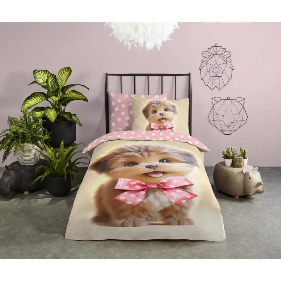 De set bestaat uit kinderdekbedovertrek van 140×200/220 cm inclusief ”n kussensloop van 60×70 cm met hotelsluiting. Het kinderdekbedovertrek is voorzien van een dubbele doorlopende instopstrook van 20 cm, waardoor de totale lengte circa 240 cm bedraagt. Hierdoor is het kinderdekbedovertrek geschikt voor dekbedden met een lengte van 200 tot 220 cm.