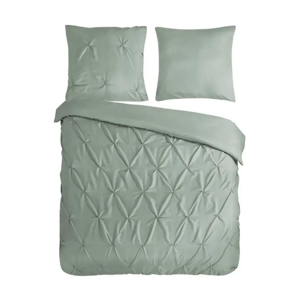 Dekbedovertrek Elegance van Pure met luxe stiksel plooien, in de kleur lichtsalie is gemaakt van 100% polyester -microfiber. Deze stof valt soepel om je heen en is licht van gewicht, wat het comfortabel maakt voor elk seizoen.