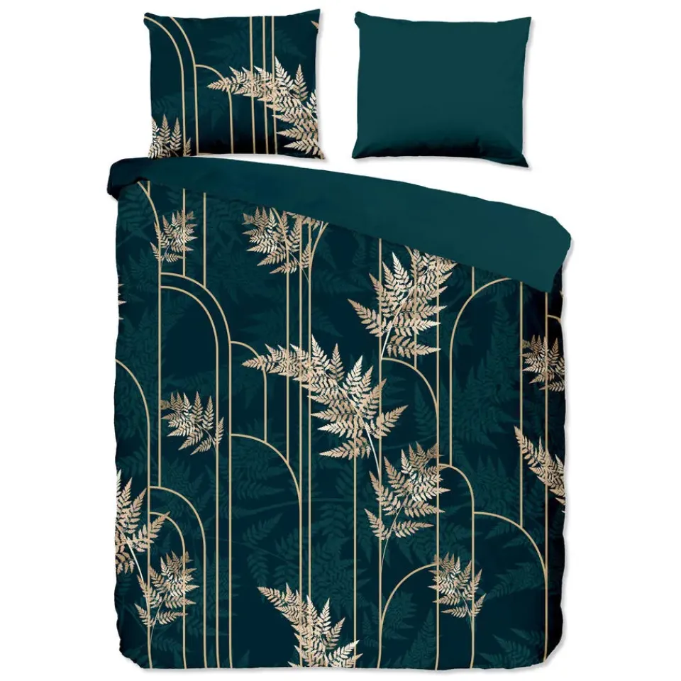 Dekbedovertrek Malak van Pure met gouden bladeren, in de kleur groen is gemaakt van 100% polyester -microfiber. Deze stof valt soepel om je heen en is licht van gewicht, wat het comfortabel maakt voor elk seizoen.