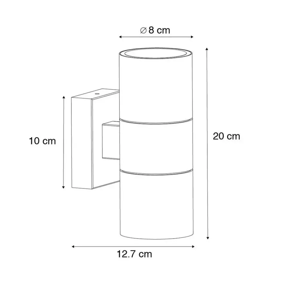 Creëer een warme ambiance in je tuin met de buiten wandlamp Duo! Vervaardigd uit duurzaam aluminium met glazen details, straalt deze lamp in tijdloos zwart de perfecte moderne uitstraling uit. Met zijn twee lichtpunten springt de Duo direct in het oog en voegt zowel functioneel indirect licht als sfeervolle verlichting toe. Met 12.7 cm breedte en 20 cm hoogte, past deze lamp moeiteloos in elke buitenruimte. Vergeet niet om bijpassende GU10 lichtbronnen te bestellen voor een complete ervaring. Dankzij zijn IP44-classificatie is de Duo ideaal voor beschutte plekken zoals tegen het huis, de schutting of onder een afdak. Maak je buitenruimte compleet en kies voor de sfeervolle verlichting van Duo!