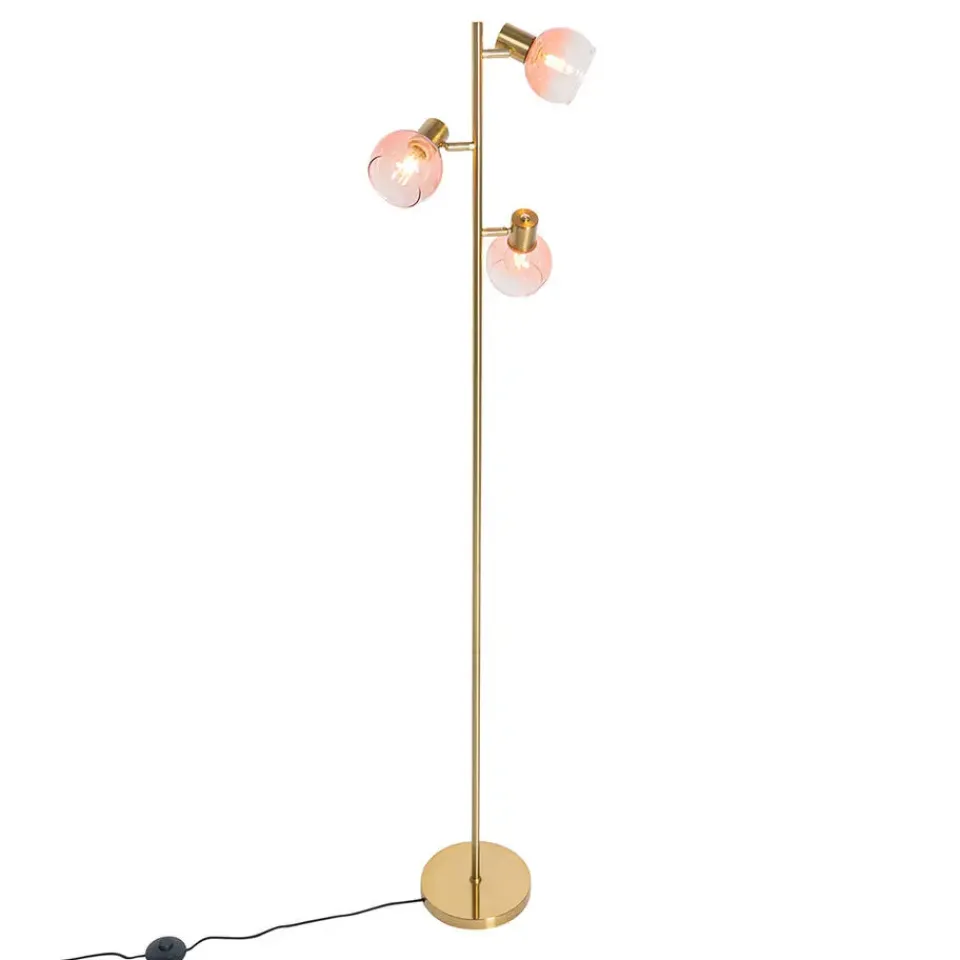 Simpel, maar toch effectief: dat is deze Art Deco vloerlamp. Vidro is gemaakt van staal met glas en afgewerkt in het roze met goud/messing. De vloerlamp heeft een diameter van 25 centimeter en een hoogte van 150 centimeter. De voet heeft een diameter van 20 centimeter en een hoogte van 2,5 centimeter. Wat meer sfeer creëren? De spot is dimbaar (dimmer niet inbegrepen). Vergeet niet om nog drie lichtbronnen met E14 fitting (max. 25 Watt) er los bij te bestellen. De lamp komt inclusief drie lampenkappen en deze hebben een diameter van 10 centimeter en een hoogte van 8 centimeter. De perfecte toevoeging in bijvoorbeeld de slaapkamer of woonkamer!