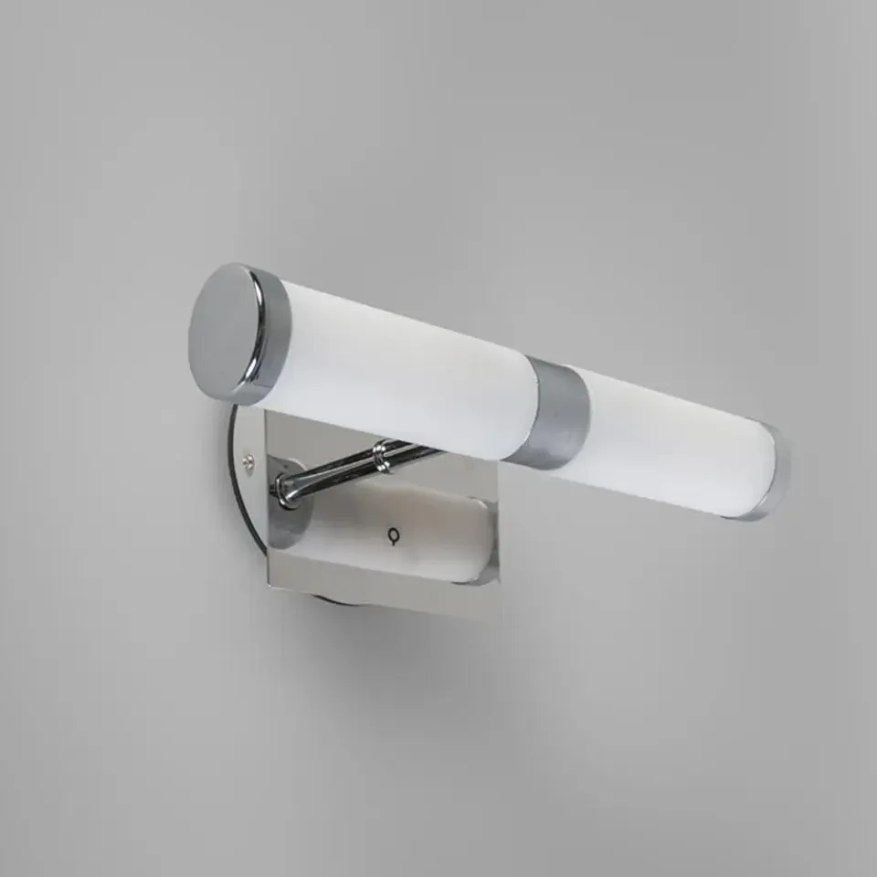 De chromen behuizing met strak design past perfect in een moderne badkamer. De twee opaal witte lampenkapjes zorgen ervoor dat het licht zacht een mooi verdeeld wordt en je niet in de felle lichtbronnen kijkt.