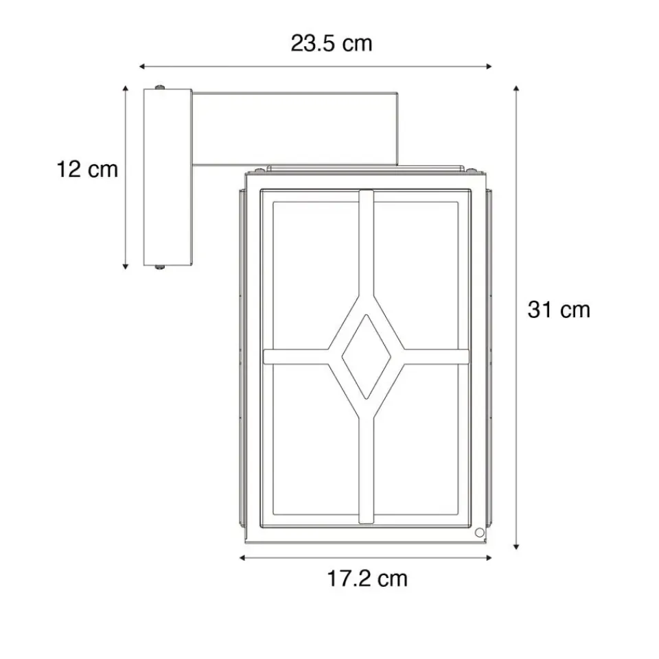 De buiten wandlamp Dover is een prachtige toevoeging aan elke klassieke buitenruimte. Deze antieke lamp is uitgevoerd in zwart en gemaakt straalt en glas. Zo combineerd Dover een robuuste constructie met een verfijnde uitstraling. Met een hoogte van 25 cm, een lengte van 17,2 cm, en een breedte van 17,2 cm, heeft deze lamp de ideale afmetingen om een opvallende maar niet te overweldigende aanwezigheid te creëren. De wandlamp Dover is ontworpen om dimbaar te zijn, zodat je de lichtintensiteit kunt aanpassen aan jouw voorkeur. Let wel, de dimmer moet apart worden aangeschaft. Bovendien is de lichtbron niet inbegrepen, waardoor je zelf de perfecte lichtbron kunt kiezen die aan jouw eisen voldoet. Dover biedt niet alleen praktische verlichting maar voegt echt een vleugje klassieke elegantie toe aan je buitenomgeving. Verlicht je buitenruimte met de stijlvolle en functionele buiten wandlamp Dover en geniet van de sfeervolle ambiance die deze lamp creëert.