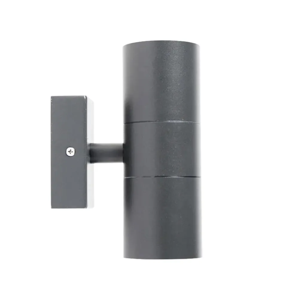 Deze wandlamp Duo is een super functionele buitenlamp met strakke vormgeving uitgevoerd in donker grijs (antraciet). Het licht van deze lamp straalt naar boven en naar beneden. Dit geeft een prachtig effect op de muur. Met een IP waarde van IP44 kan deze wandlamp tegen de regen. Ook is hij gemakkelijk aan te sluiten op 230 volt.