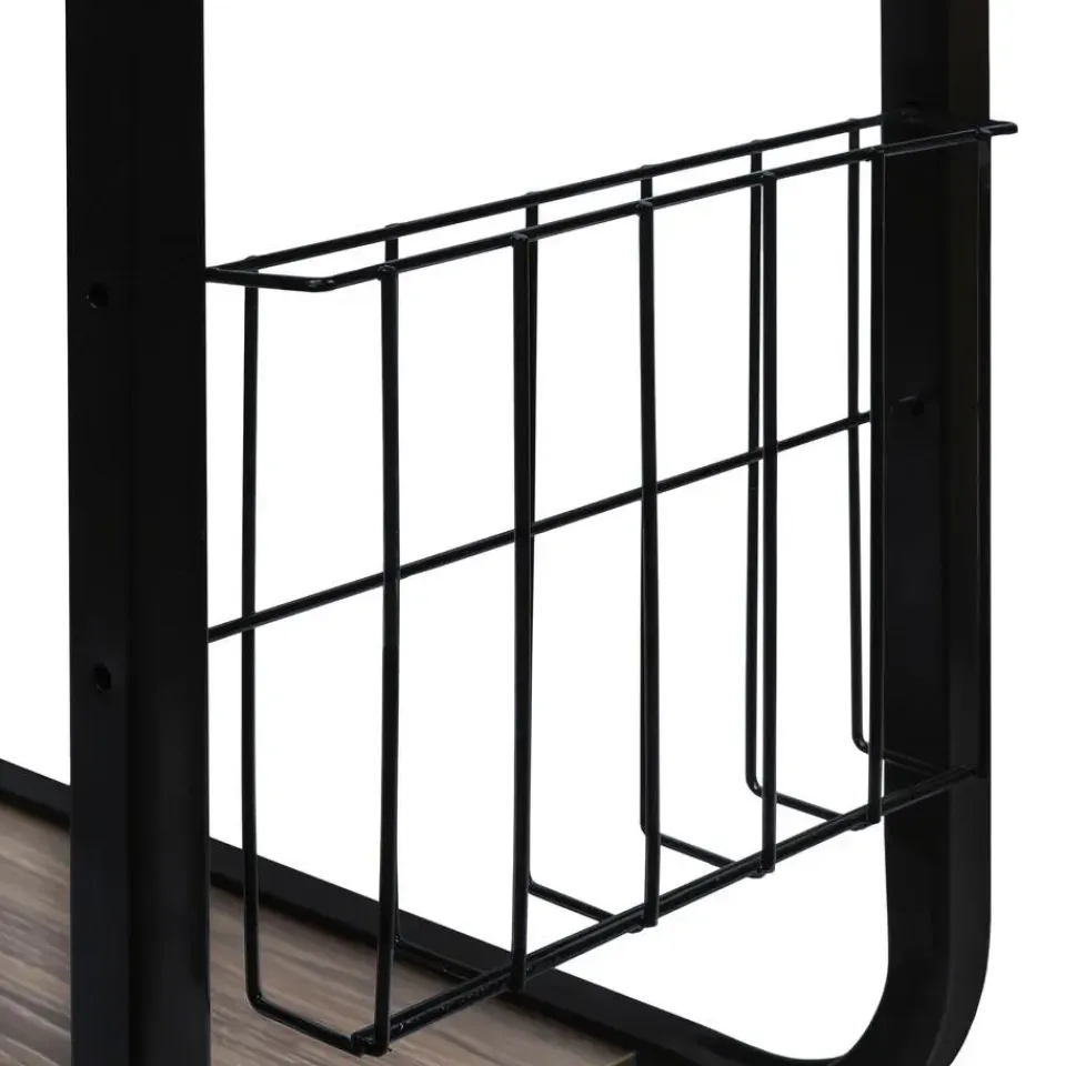 Languit televisie kijken of een boekje lezen op de bank? Ontbijtje op bed in het weekend? Maak het jezelf dan heerlijk gemakkelijk met deze QUVIO Bijzettafel op wieltjes met tijdschriftenrek! Met een maximale afmeting van 30 x 48 x 58 cm (lxbxh) is het meubel perfect om naast de bank, de tafel of het bed te zetten. Uiteraard kan het tafeltje ook als nachtkastje gebruikt worden of als keukentrolley. Lekker veelzijdig! Het zwarte frame is van metaal gemaakt en de planken zijn van hout. Deze sterke materialen zorgen ervoor dat het product zijn stevigheid behoudt. Met het moderne, strakke design en de neutrale kleuren past deze bijzettafel in elk interieur.