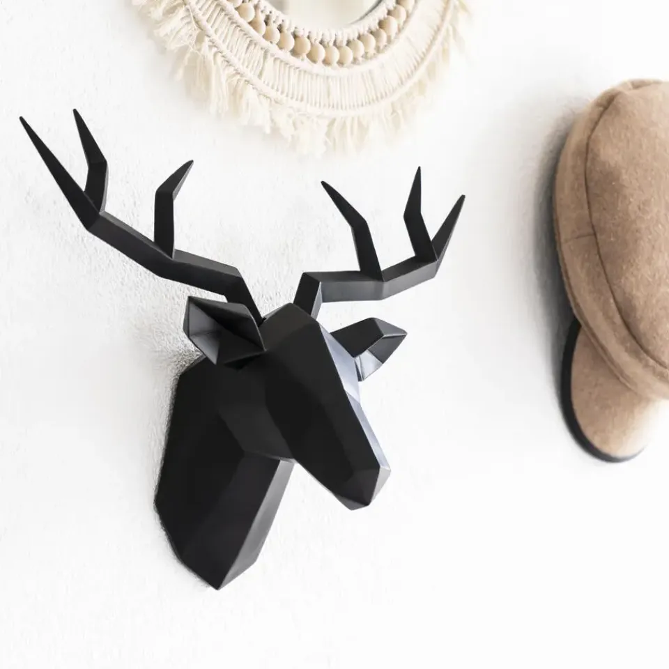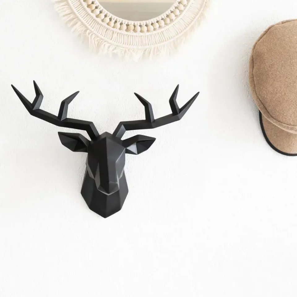 Het QUVIO Hert muurdecoratie inclusief wandbevestiging geeft een huiskamer zoals gezegd een mooie uitstraling en zorgt net voor dat extraatje. De decoratie is volledig zwart en is van boven naar beneden nog geen 30 centimeter hoog, een ideale woonkamerdecoratie dus. Het hertje steekt uit vanaf de wand waardoor dit een realistische 3D uitstraling geeft. De muurdecoratie kan mooi te combineren zijn met meubels in de kamer, denk bijvoorbeeld aan een zwarte bank of een zwart klein tafeltje onder de wand. Als je in dat geval bijvoorbeeld witte of grijze muren hebt is de combinatie zwart met wit met vervolgens een zwarte decoratie erbij een goede match. Het QUVIO hert muurdecoratie is naast dat het eenvoudig op de muur te bevestigen is, ook weer makkelijk er vanaf te halen.