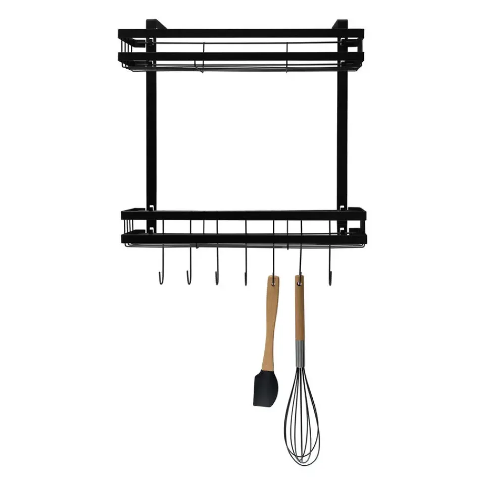 Dit ophangbaar kruidenrek leent zich perfect voor tal van praktische toepassingen. Denk hierbij aan het ophangen van keukengerei, kruiden of koffiekopjes. Hierdoor tover je je keuken om tot een ware coffee corner en kun je de leukste creaties met koffie maken. De haken waar je de spullen aan op kan hangen zorgen voor een erg speelse twist in de keuken.