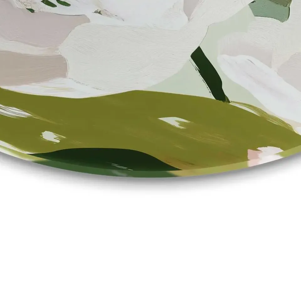 Print op 4mm dik ESG-veiligheidsglas, compleet met voorgemonteerde wandmontage en afstandhouders. De ronde vorm van de glasprint onderstreept op subtiele wijze het kenmerkende karakter van de afbeelding. Kenmerken