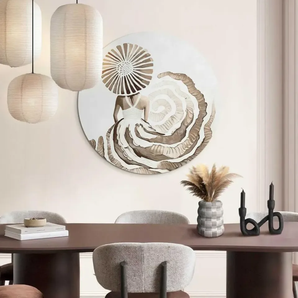 Print op 4mm dik ESG-veiligheidsglas, compleet met voorgemonteerde wandmontage en afstandhouders. De ronde vorm van de glasprint onderstreept op subtiele wijze het kenmerkende karakter van de afbeelding. Kenmerken