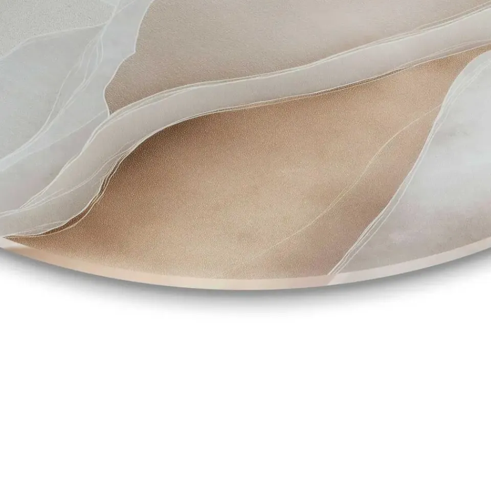 Print op 4mm dik ESG-veiligheidsglas, compleet met voorgemonteerde wandmontage en afstandhouders. De ronde vorm van de glasprint onderstreept op subtiele wijze het kenmerkende karakter van de afbeelding. Kenmerken