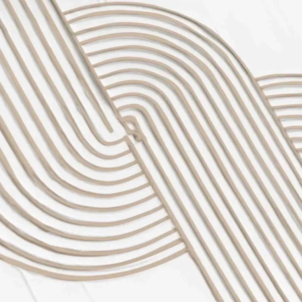 Handgemaakte wanddecoratie met abstract reliëf in wit gips omkadert door een houten lijst. Het scandinavisch minimalisme met 3d-textuur past in de meeste moderne woonstijlen zoals basic, vintage, urban of industrieel. Kenmerken