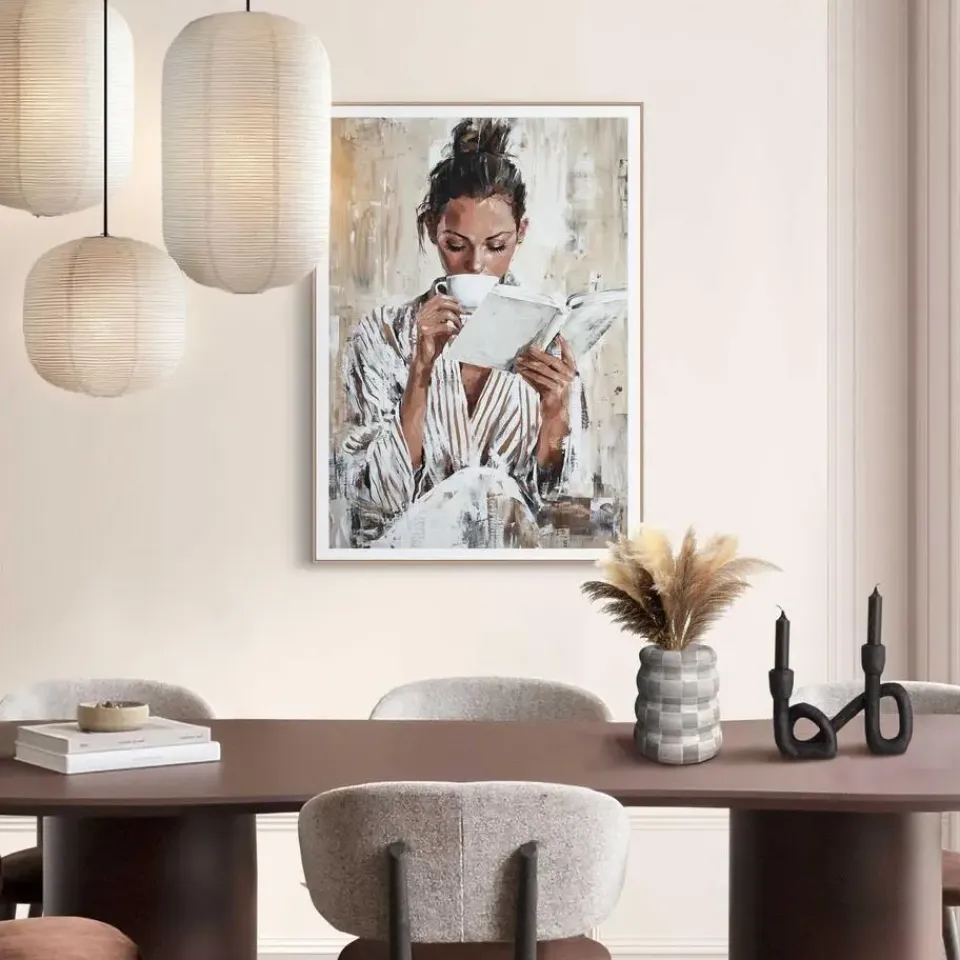 Een hoge kwaliteit Art Print verwerkt op een 3mm dik MDF-bord. De stijlvolle prints worden omlijst door een dun frame. Je kunt deze wanddecoratie neerzetten of ophangen aan het frame. Door de schilderijen te combineren creëer je een fraaie en tijdloze muurdecoratie voor iedere ruimte. Kenmerken