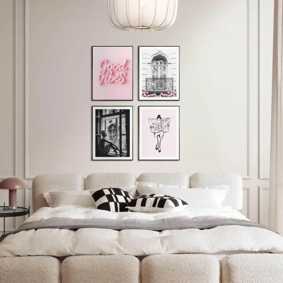Geef je interieur een persoonlijke touch met de Mix & Match 4pcs set. Deze set bestaat uit vier harmonieuze schilderijen in het formaat 30×40 cm, gedrukt op stevig MDF van 3 mm dik met een zwarte lijst. De ontwerpen sluiten perfect op elkaar aan en kunnen zowel opgehangen als neergezet worden, bijvoorbeeld op een plank, kast of dressoir. Dankzij het tijdloze design zijn ze makkelijk te combineren met verschillende woonstijlen, zoals modern, Scandinavisch of minimalistisch. Ideaal voor een speels effect aan de muur of om een lege hoek sfeervol aan te kleden. Kenmerken