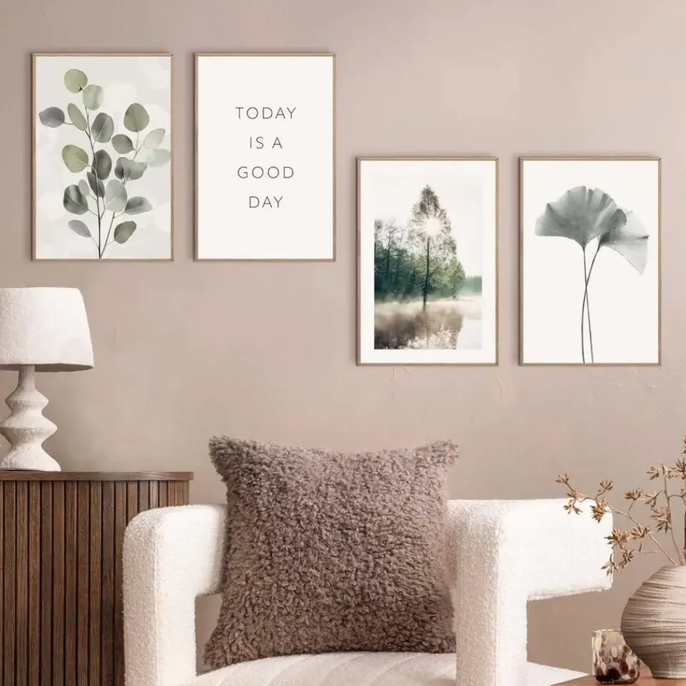 Geef je interieur een persoonlijke touch met de Mix & Match 4pcs set. Deze set bestaat uit vier harmonieuze schilderijen in het formaat 20x30cm, gedrukt op stevig MDF van 3 mm dik met een eikhoutkleurige lijst. De ontwerpen sluiten perfect op elkaar aan en kunnen zowel opgehangen als neergezet worden, bijvoorbeeld op een plank, kast of dressoir. Dankzij het tijdloze design zijn ze makkelijk te combineren met verschillende woonstijlen, zoals modern, Scandinavisch of minimalistisch. Ideaal voor een speels effect aan de muur of om een lege hoek sfeervol aan te kleden. Kenmerken