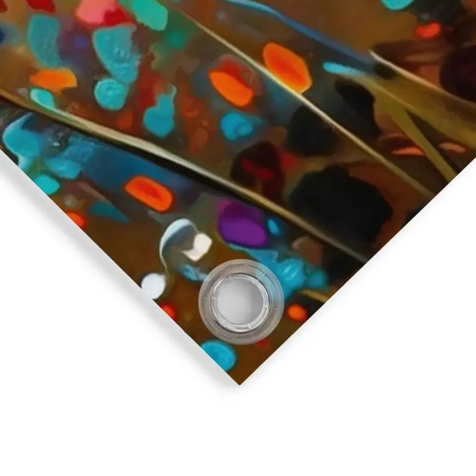 Onze tuinposter geeft je tuin, terras of balkon in één keer een nieuwe uitstraling. In een handomdraai maak je van een saaie muur of schutting een echte blikvanger. De poster wordt geprint met een 6-kleuren latexprinter op mat polyester canvas. Dit doek is geschikt voor buitengebruik en bestand tegen zonlicht en regen. Ophangen is eenvoudig dankzij de voorgemonteerde kunststof ringen; gebruik hiervoor schroeven, spijkers of spanelastieken (niet meegeleverd). Voor een extra lange levensduur hang je de tuinposter bij voorkeur onder een veranda of afdak. Let op: na verloop van tijd kan de afbeelding door direct uv-licht verkleuren. Kenmerken