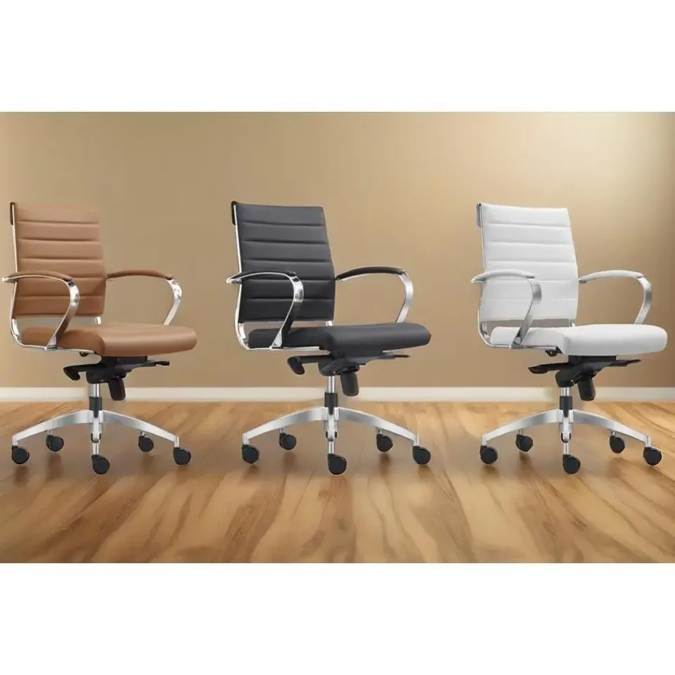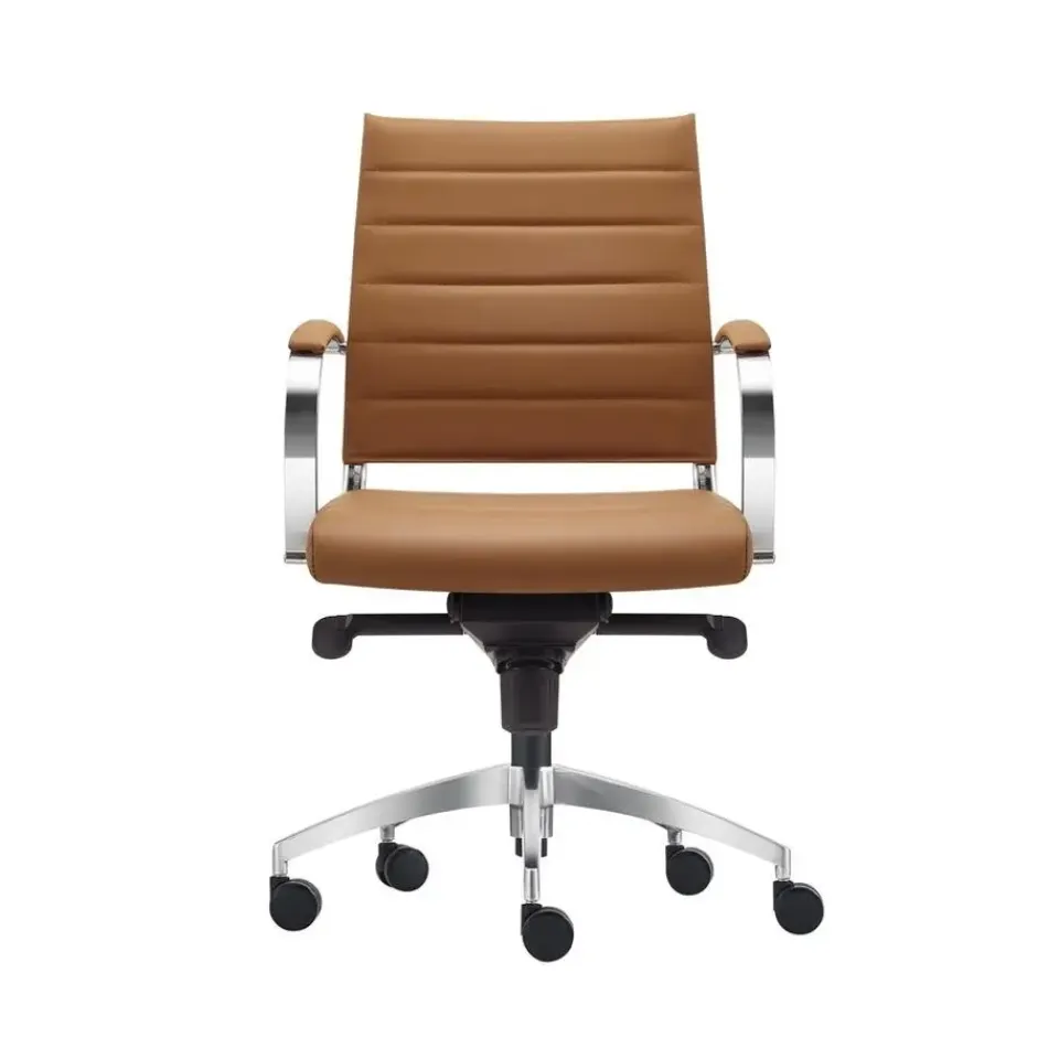 De Cádiz kantoorstoel heeft een chique uitstraling door het gebruik van luxe materialen. De zitting en rugleuning zijn bekleed met hoge kwaliteit echt leder*. Dit zorgt ervoor dat je jarenlang plezier van je stoel hebt. Daarnaast is het frame van de stoel volledig chroomkleurig, evenals de armleuningen en de stervoet, wat zorgt voor een elegante uitstraling.