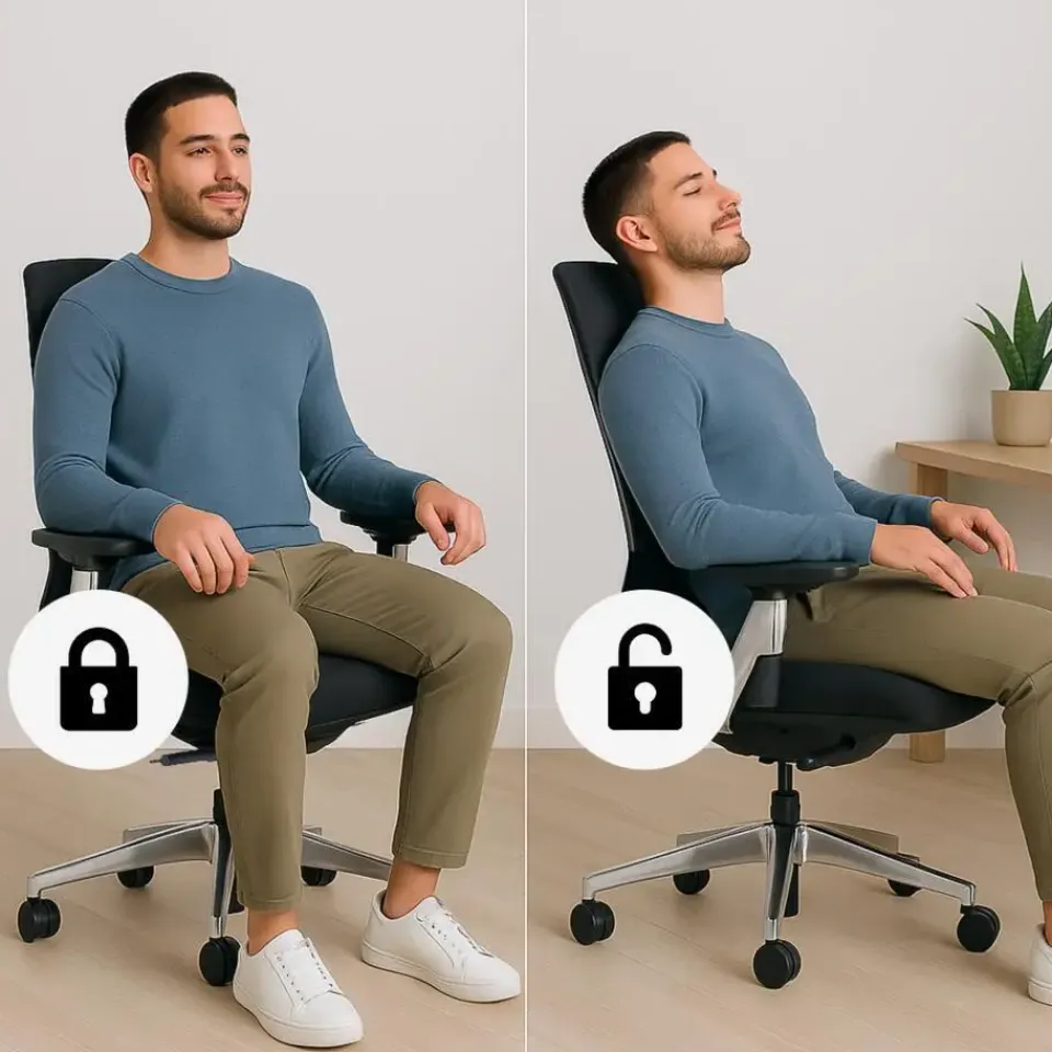 Daarnaast beschikt de bureaustoel over een kantelmechanisme met vier vergrendelposities. Zo kun jij een ontspannen houding aannemen tijdens het uitvoeren van je werk.