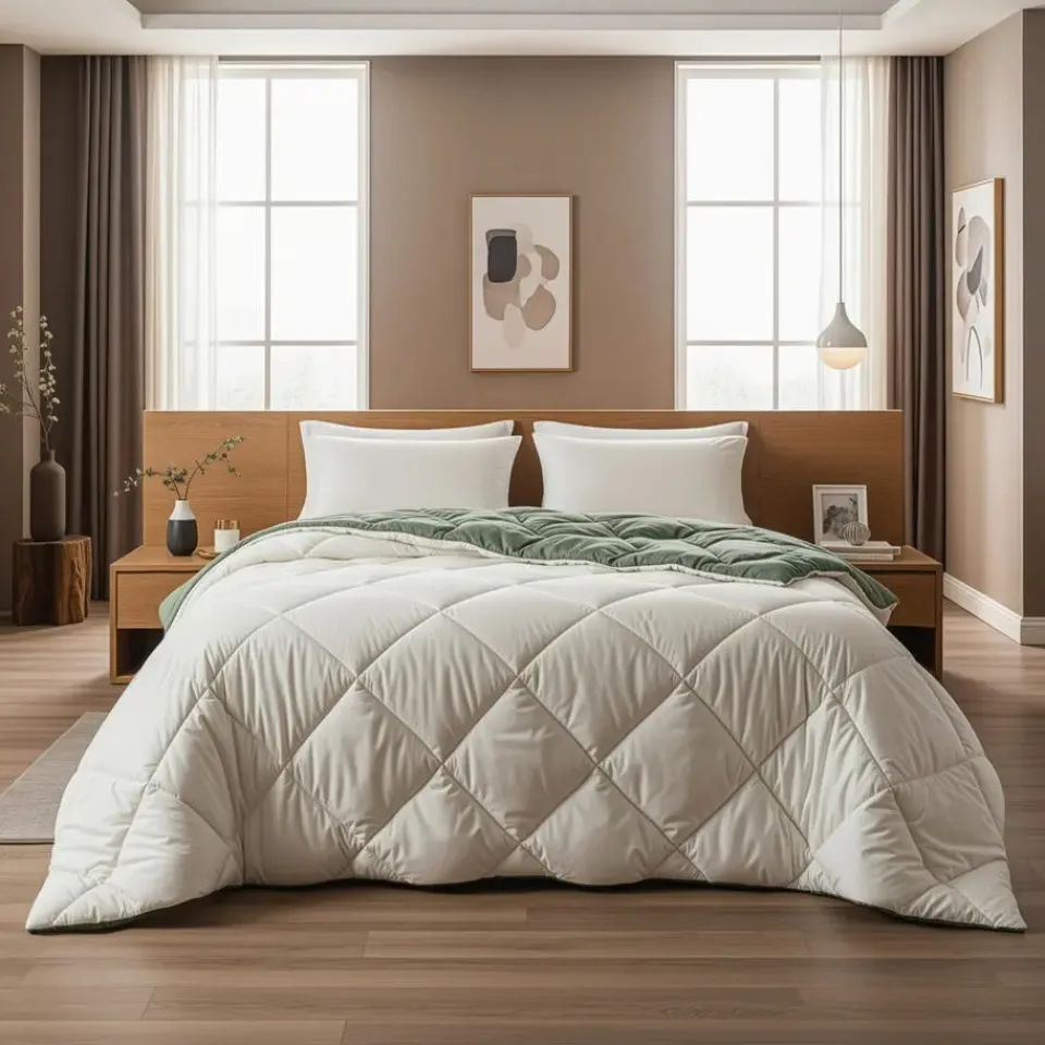 Dit 2-in-1 dekbed is gevuld met 100% polyester holle vezels (300 gsm) en biedt ademend, antiallergisch en vochtregulerend slaapcomfort. Lichtgewicht en geschikt voor vrijwel elk seizoen.