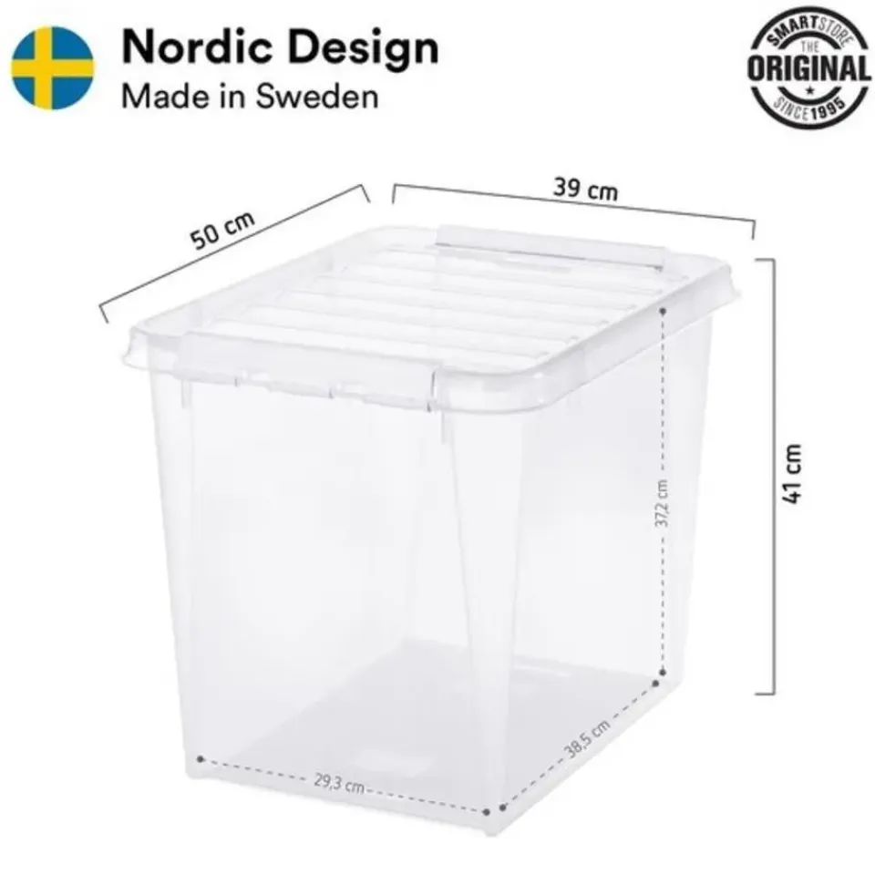 Ruime opbergdoos voor veelzijdige opslag in bergingen of in de kelder. Ideaal formaat voor het opbergen van kleding, schoenen, dekens en kussens. De dozen kunnen zonder deksel in elkaar worden gestapeld en met deksel op elkaar worden gestapeld. De stevige clips sluiten de deksel goed af. De clips zijn gemaakt van gerecycled plastic.Ideaal voor berging of kelder.
