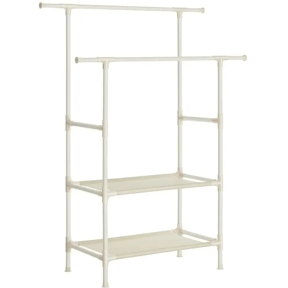 - kledingrek, kapstok van metaal, met 2 kledingstangen, 1 plank, tot 70 kg belastbaar, eenvoudige montage, wit, RDR01WT