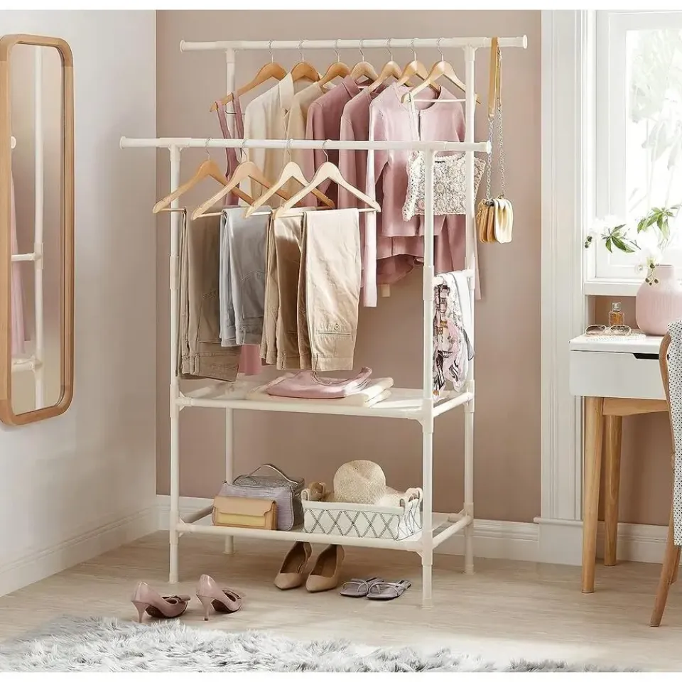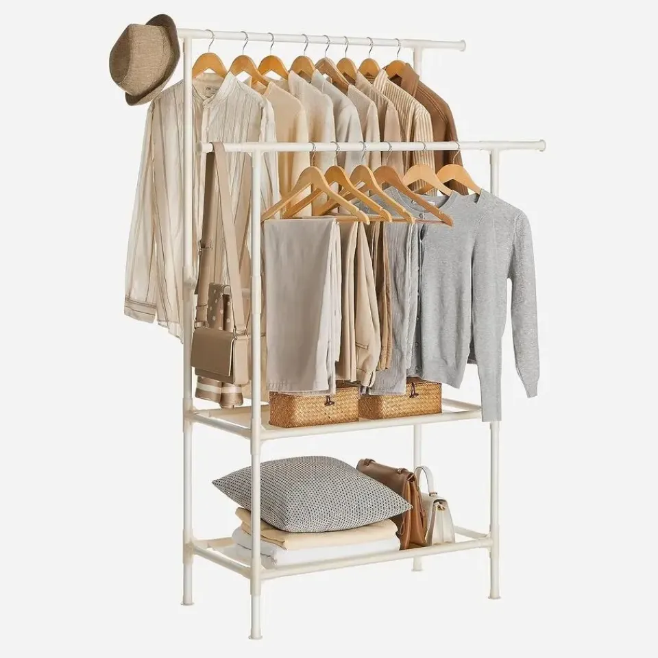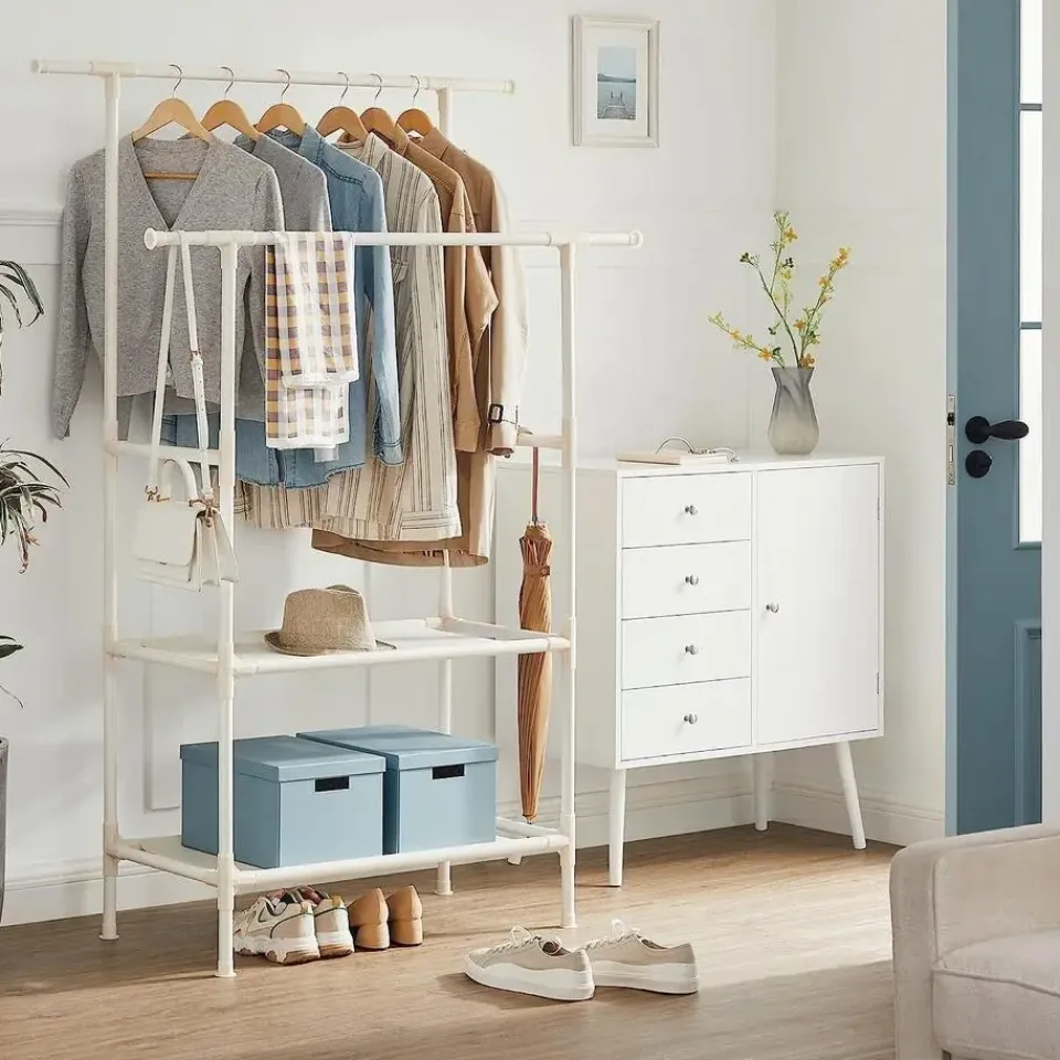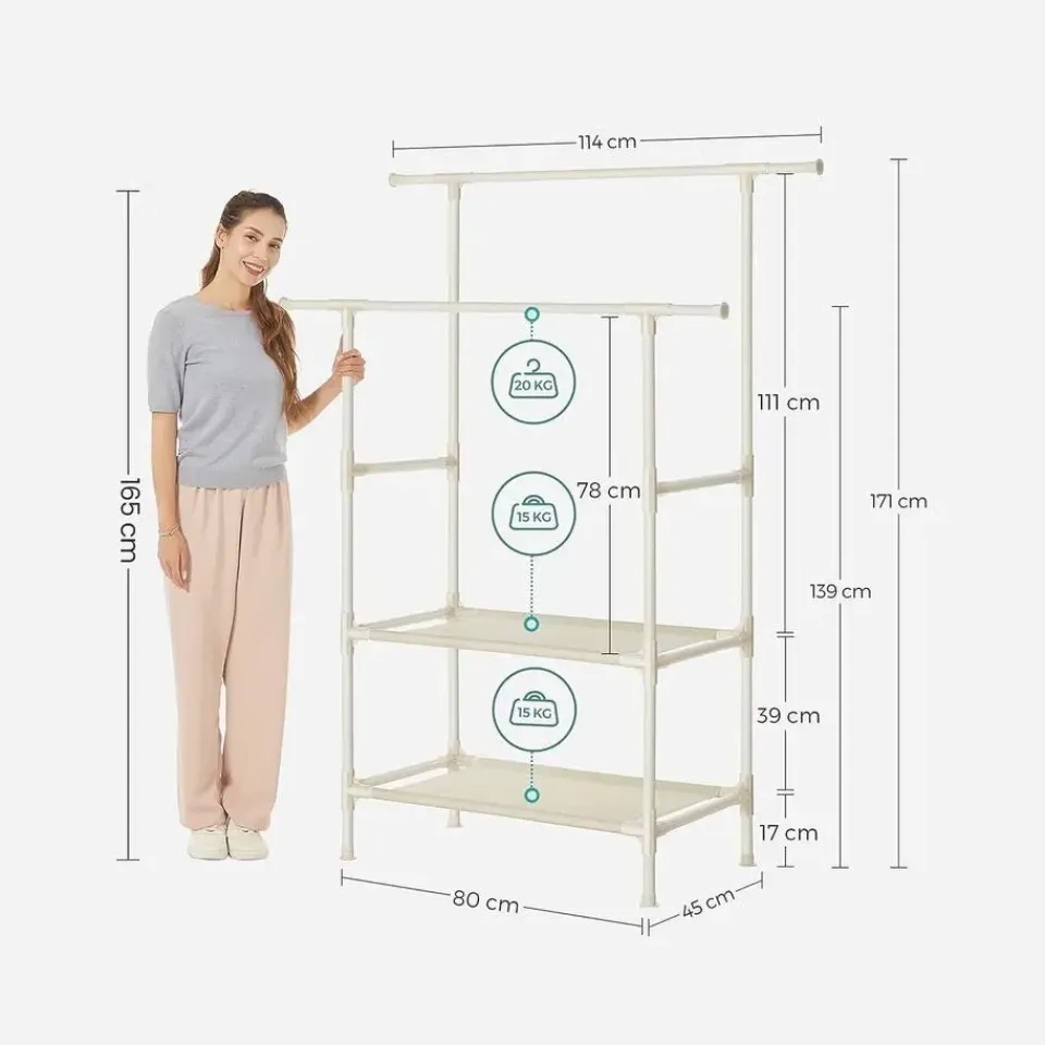 - Inhoud levering: Een kledingrek met 2 stangen, die orde in je huis brengt. Er zitten ook gedetailleerde instructies en genummerde onderdelen bij om de montage te vergemakkelijken.