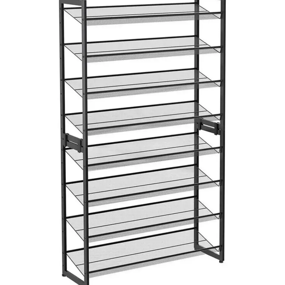 Met dit metalen rek heb je een goede oplossing voor rondslingerende schoenen in je hal. Het heeft maar liefst 8 roosters, waarop je elk 4 tot 5 paar schoenen kwijt kunt, dus in totaal 32 tot 40 paar schoenen.