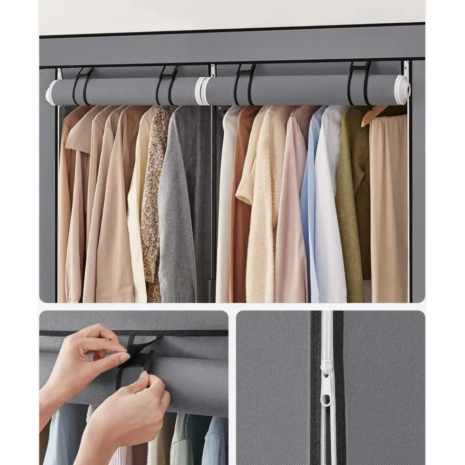 Op zoek naar een opbergoplossing die zowel stijlvol als praktisch is? Zoek niet verder, want onze Kledingopbergkast voor in de slaapkamer is de perfecte opbergoplossing voor je slaapkamer! Hij wordt geleverd met twee kledingroedes met elk een draagvermogen van max. 30 kg en twee verstelbare legplanken met elk een draagvermogen van max. 10 kg, waardoor het echt een ruime en veerkrachtige opbergoplossing is. Geniet van een stofvrije bescherming voor je kleding, dankzij de stoffen hoes met rits en klittenband om alles op orde te houden. En waarom zou je je zorgen maken over de montage? Voor deze kledingkast heb je geen gereedschap nodig en het kost je geen enkele tijd om hem in elkaar te zetten; bevestig gewoon de metalen buizen aan de plastic verbindingsstukken en je bent klaar! En het beste van alles is dat deze kledingkast geschikt is voor appartementen van elke grootte, dus geen zorgen als je niet veel ruimte hebt! Krijg je kledingchaos onder controle met onze Garderobekast, Kledingopbergkast voor slaapkamer en maak je geen zorgen meer over die rommelige stapels kleding: – Ruime opbergoplossing met twee kledingroedes en twee verstelbare planken – Veerkrachtig en sterk, met een max. draagvermogen van 30 kg voor elk van de kledingroedes. Draagvermogen van 30 kg elk voor de hangrails en 10 kg voor de legplanken – Stofvrije bescherming, dankzij de stoffen hoes met rits en klittenbandsluiting – Eenvoudig te monteren zonder gereedschap – Geschikt voor alle maten appartementen met de afmetingen 43 x 140 x 174 cm Dus wacht niet langer en haal deze stijlvolle en praktische kledingkast, kledingopbergkast voor je slaapkamer, vandaag nog in huis! Onze kledingkast helpt je om van de kledingchaos af te komen, zelfs in een klein appartement, en biedt een unieke en stijlvolle opbergoplossing voor alle soorten kleding.