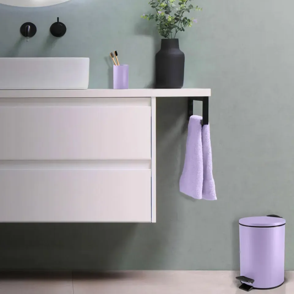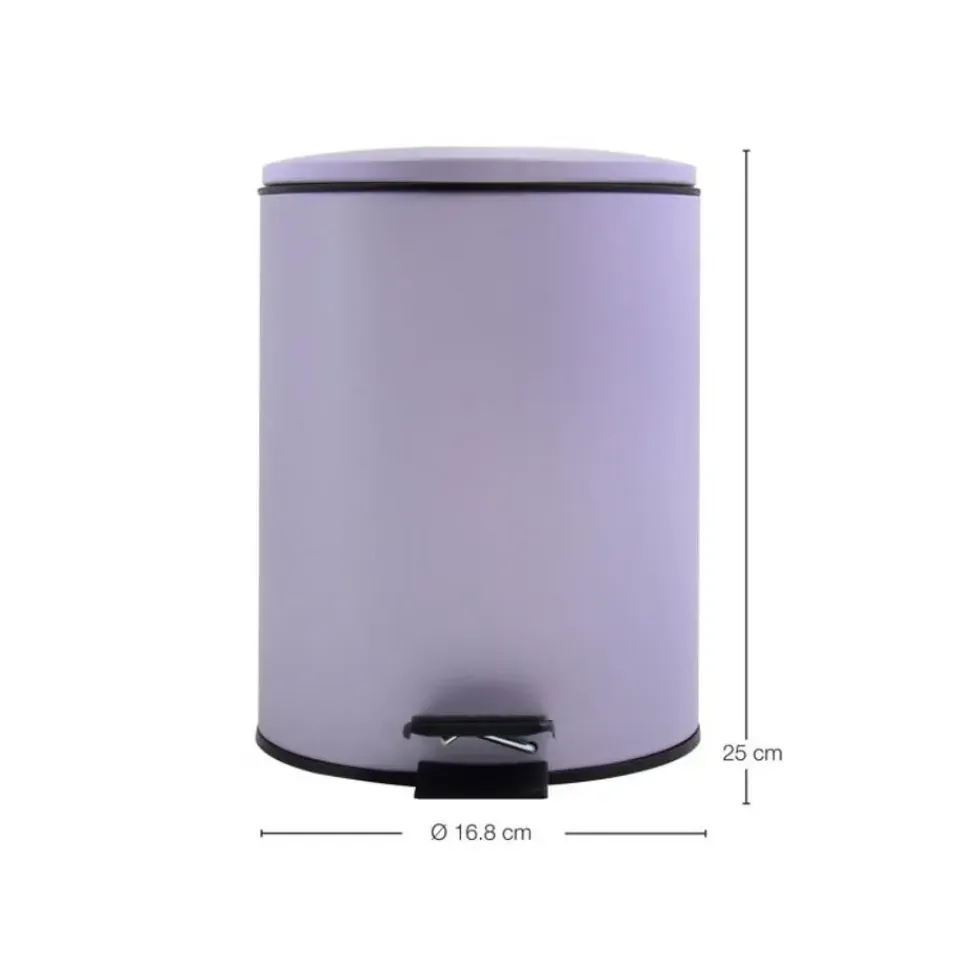Pedaalemmer/prullenbak model Cannes voor in de badkamer en/of toilet, klein model met inhoud 3 liter. Kleur: lila paars. Deze prullenbak is gemaakt van metaal en de deksel heeft een soft-close sluit systeem. Afmetingen zijn ongeveer L17 x H25 cm. Deze kleine pedaalemmers hebben een handige uitneembare binnenbak gemaakt van gerecycled plastic. Zeer goede kwaliteit materialen zijn gebruikt om deze kleine pedaalemmer een luxe uitstraling te geven.