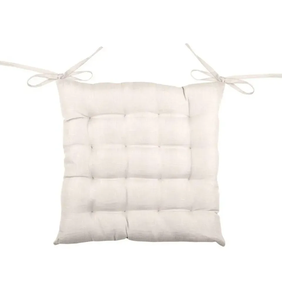 Stoelkussens BEA voor binnen stoelen in de kleur gebroken wit met afmetingen van 40 x 40 x 4 cm. Makkelijk vast te maken met aangehechte touwtjessluiting. Materiaal: 100% polyester met linnen effect. Diverse mooie luxe kleuren voor een topprijs. Platte zitvlak kussens voor binnen en buiten stoelen. De kussens in buiten gebruik moet u binnen opslaan, aangezien deze niet UV bestendig en waterdicht zijn. Schoonmaken doet u met een natte doek.