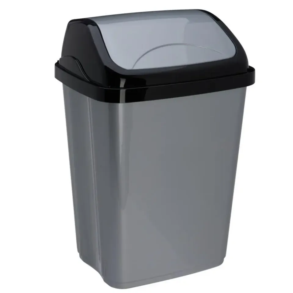Afvalemmer SWING in de kleuren grijs/zwart, met inhoud van 10 liter – met klepdeksel.