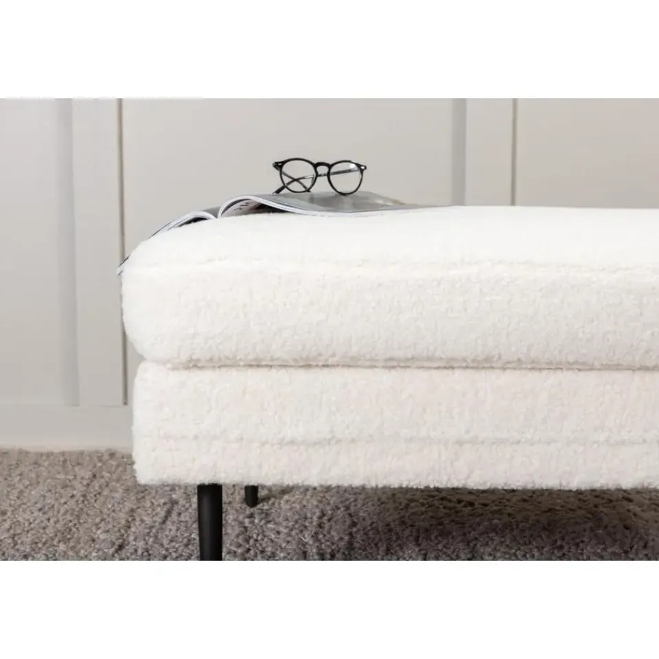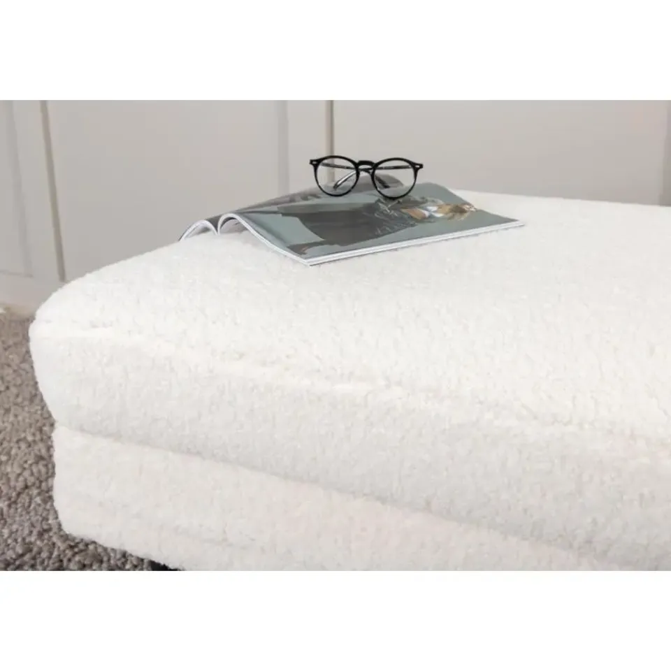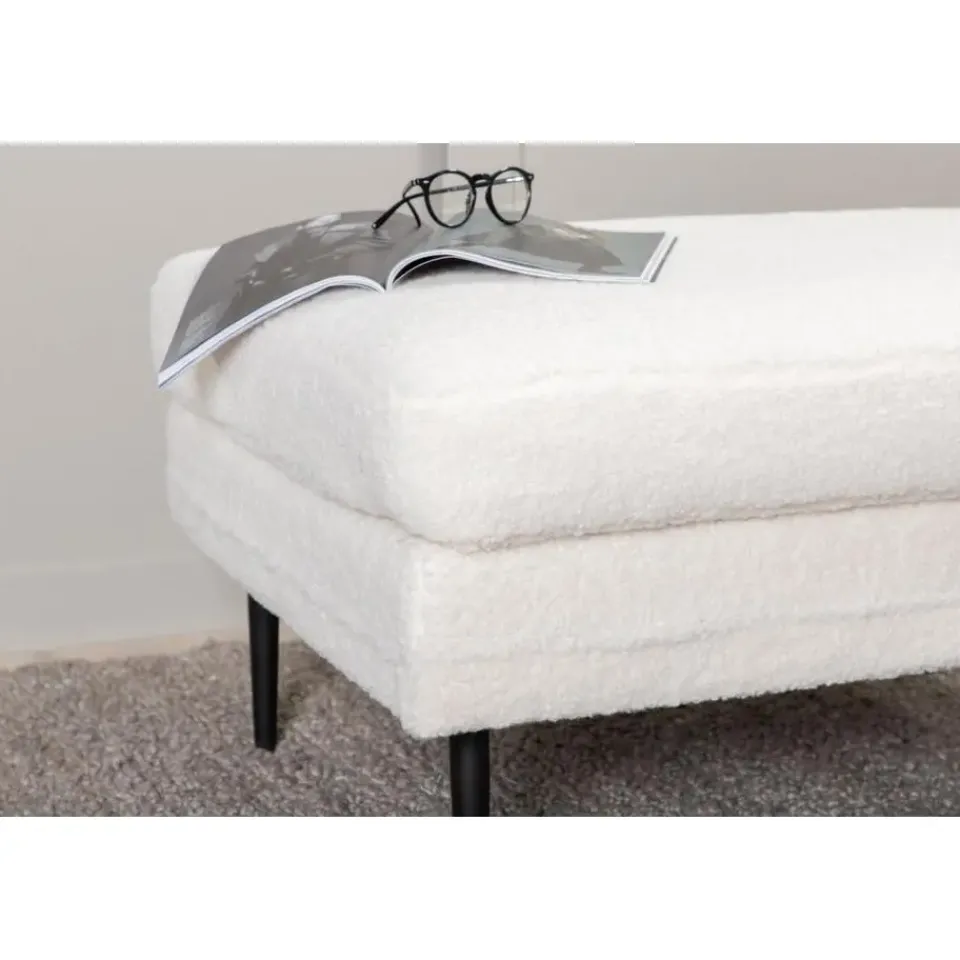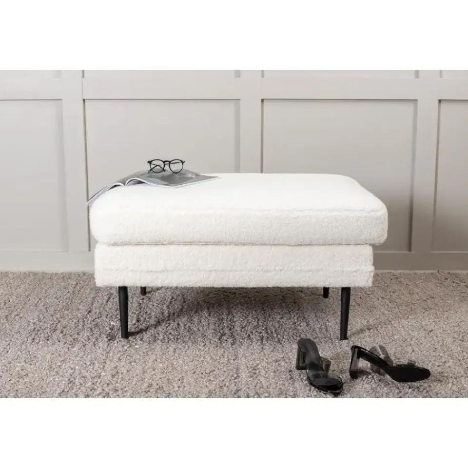 De Kira hocker – teddy – wit kan op zichzelf staan in een woonkamer of slaapkamer, maar kan ook gecombineerd worden met andere meubelstukken voor een samenhangend geheel. Dit maakt het een flexibele keuze voor diverse woonruimtes.