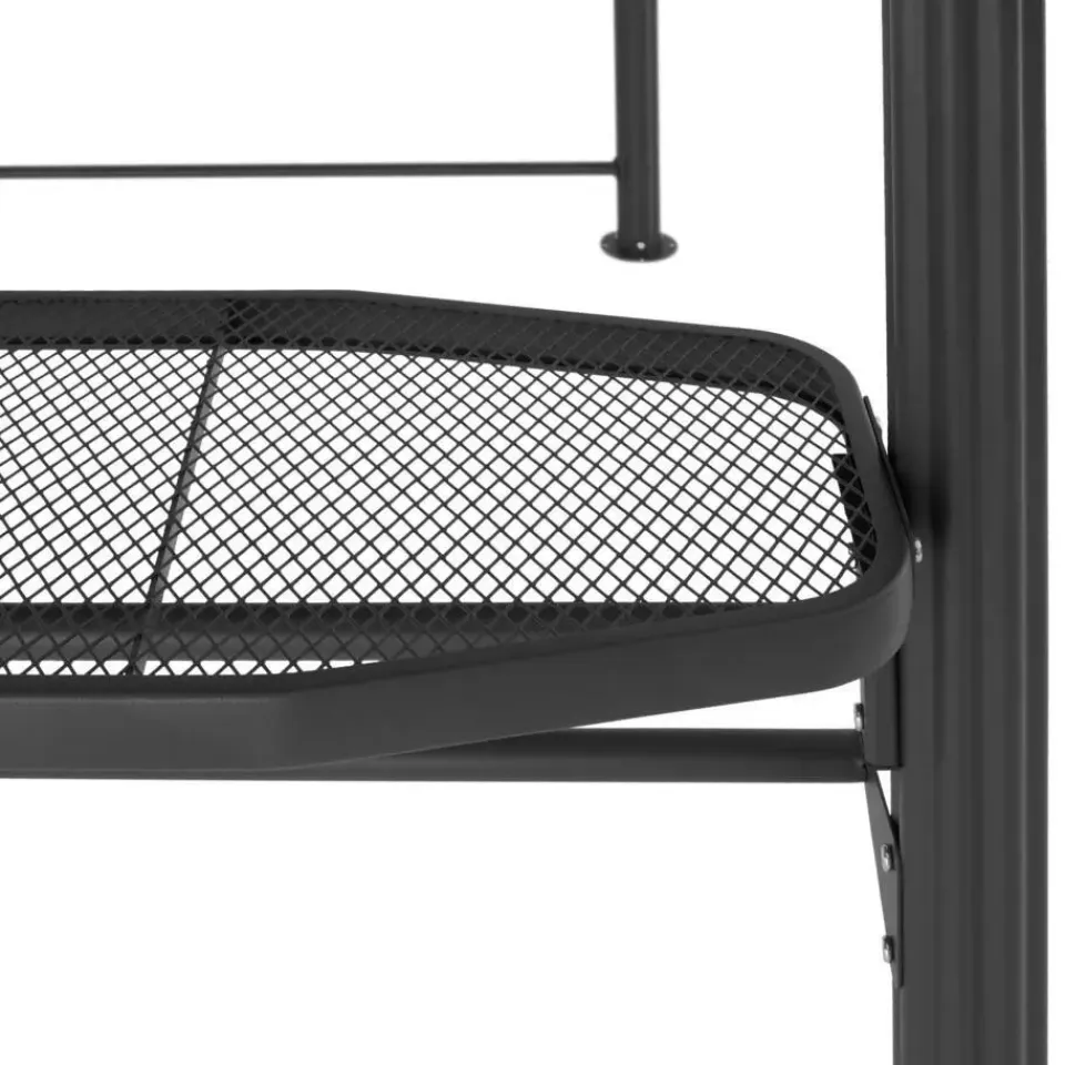 Begin het nieuwe barbecueseizoen perfect uitgerust met de handige barbecue-overkapping. Blikvanger van de open constructie is het verspringende dak, dat regen en zon buiten houdt en zorgt voor een goede rookafvoer. Etenswaren, sauzen en voorwerpen kunnen gemakkelijk worden opgeborgen op de zijroosters, terwijl de ophangstangen eronder ideaal zijn voor handdoeken, tangen, spatels en dergelijke. Kenmerkend voor de solide constructie zijn de stabiliserende kruisschoren en de vier solide poten, waarvan de stabiliteit kan worden verhoogd met de meegeleverde haringen – optimaal genieten in je tuin met vrienden of familie met de stijlvolle barbecuepaviljoen Asado. Let op: Montage vereist