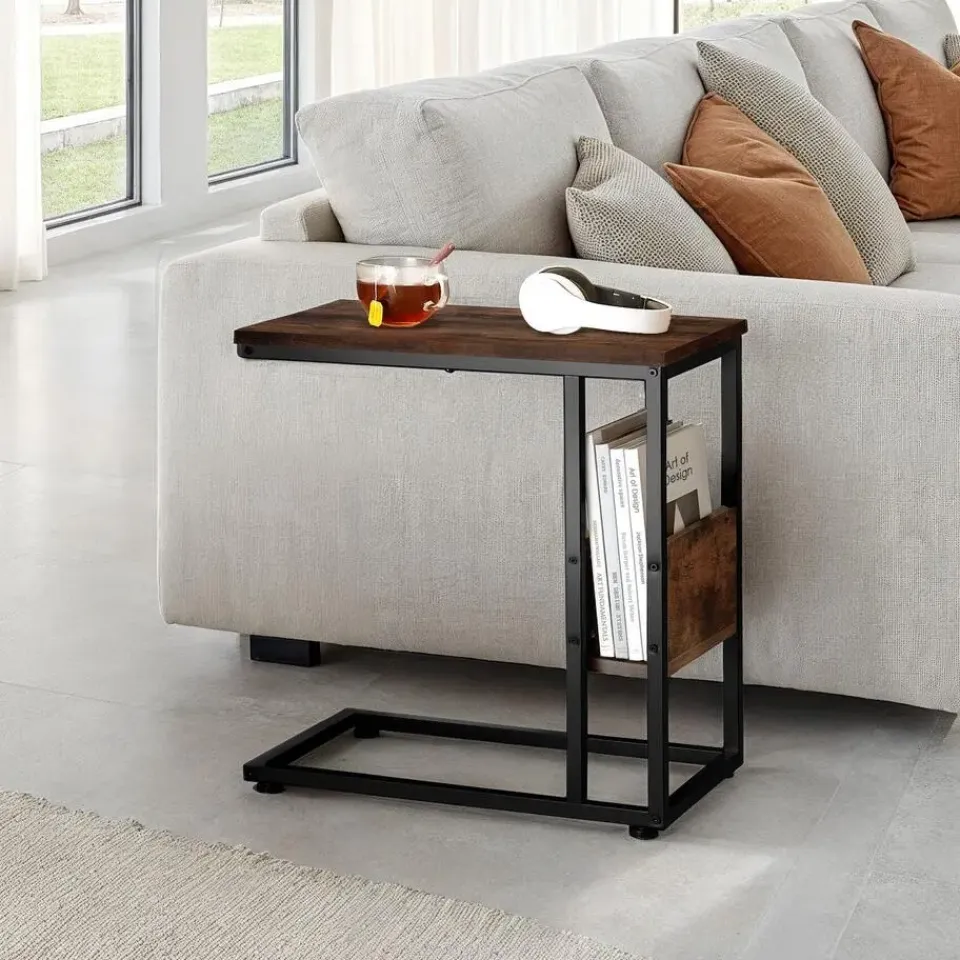 De opmerkelijke bijzettafel Wigan geeft persoonlijkheid aan je interieur. Dankzij de asymmetrische C-vorm kan de kenmerkende blikvanger moeiteloos onder de fauteuil, bank of het bed worden geschoven. De stevige plank en het ruime zijvak in houtlook stralen natuurlijke charme uit en harmoniëren perfect met het zwarte frame van massief staal. De vier kunststof pootjes kunnen tot op de millimeter nauwkeurig worden afgesteld om maximale stabiliteit te garanderen – de ideale aanvulling voor een gezellige avond voor de tv: de praktische bijzettafel Wigan. Let op: Montage vereist