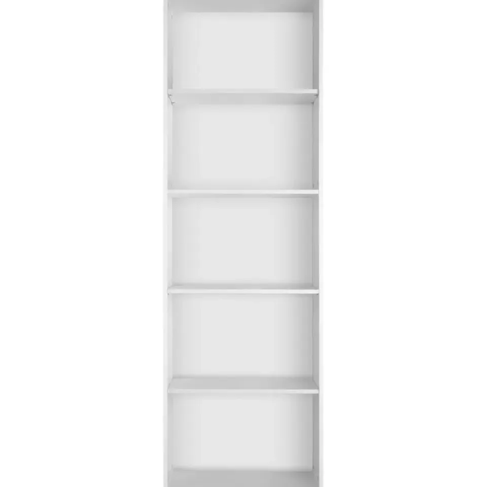 Dit smaakvolle boekenrek is als opbergmogelijkheid een ware allrounder. Het gunstige hoogkantformaat heeft maar weinig vloeroppervlak nodig en creëert tegelijkertijd veel opbergruimte. Het comfortabele formaat van de individuele vakken is optimaal geschikt voor kleding, accessoires, decoraties of een eigen bibliotheek. Door de bewust bescheiden look kan de robuuste constructie makkelijk in vele woonstijlen geïntegreerd worden – zowel in klassieke alsook in moderne omgevingen slaat het tijdloze staande rek altijd een goed figuur. Let op: Montage vereist