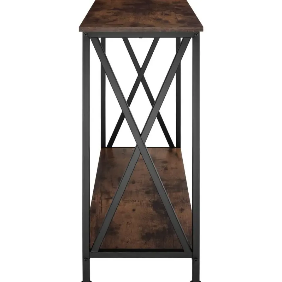- Smalle consoletafel met zijdelingse diagonale strepen in ruige industriële look