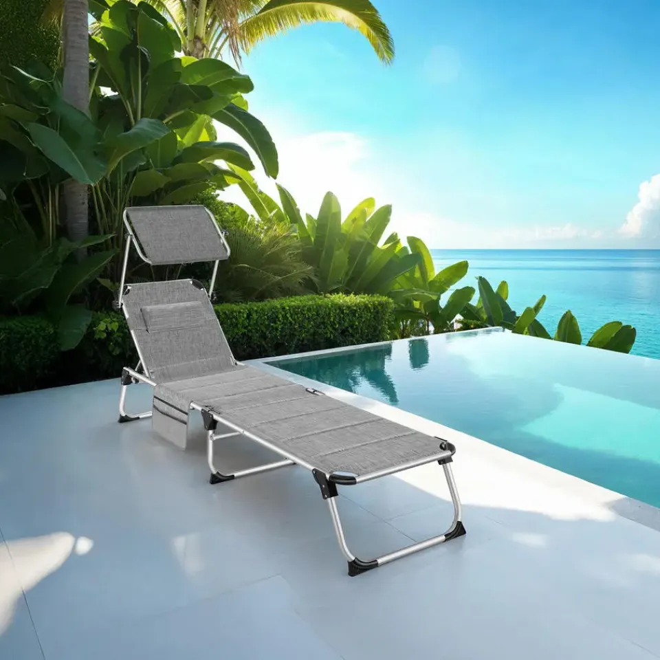 Op het slim ontworpen ligbed Lorella kan je optimaal van de zomer genieten. Het hoogste comfort wordt gegarandeerd door het ademende, gestoffeerde ligvlak, het zachte – indien nodig verwijderbare hoofdkussen en het handige zijvak. Het stabiele frame van aluminium is absoluut weerbestendig, wat de ligstoel in combinatie met de robuuste, waterafstotende kunstvezelbekleding onderhoudsvriendelijk en bestendig maakt. Dankzij het verstelbare zonnedak, de flexibele rugleuning met zes kantelhoeken en twee draaggrepen biedt de lichte opklapbare ligstoel Lorella een heel individuele relaxervaring – waar en hoe je maar wilt. Let op: Montage vereist