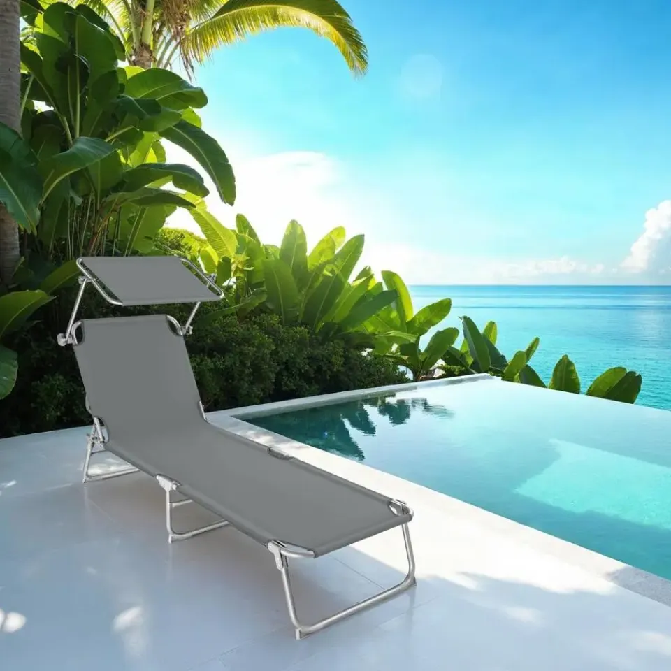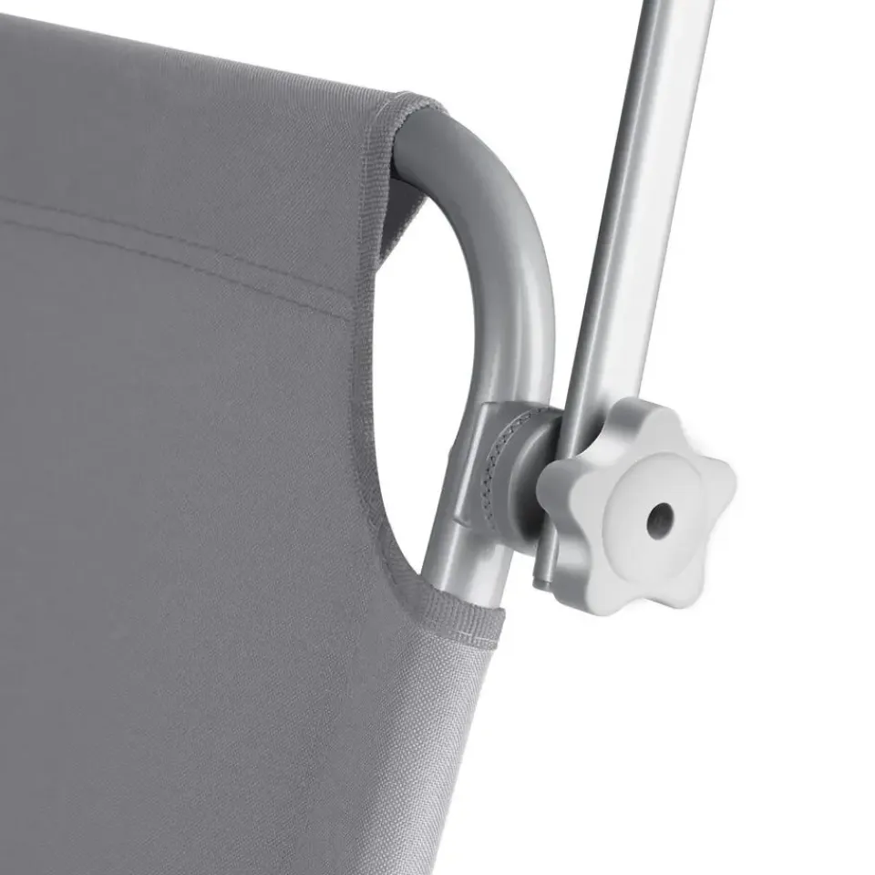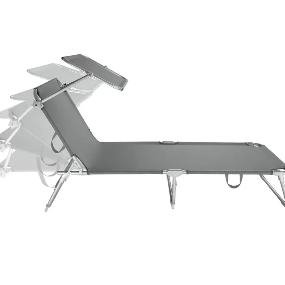 Hoogwaardige tuinligbed met zonneluifel. De ideale partner voor vrije tijd en vakantie om te ontspannen en te genieten. De compacte constructie van de ligstoel zorgt voor een ruimtebesparend transport. De rugleuning is in 4 standen verstelbaar. Ontspan in de tuin of onderweg met dit ligbed. Let op: Montage vereist