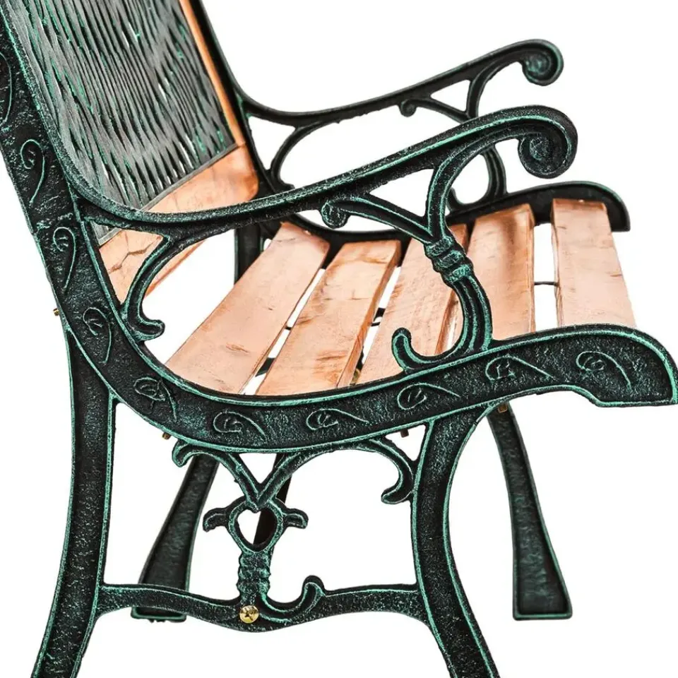 Deze mooie gietijzeren tuinbank tovert je tuin om in een echte oase van welzijn. Met haar nostalgisch ontwerp en de mooie afwerking uit gietijzer en gelakt hout is onze bank een echte blikvanger en integreert ze zich perfect in de plantenwereld in je tuin. De bank staat ook leuk in de voortuin voor het huis.