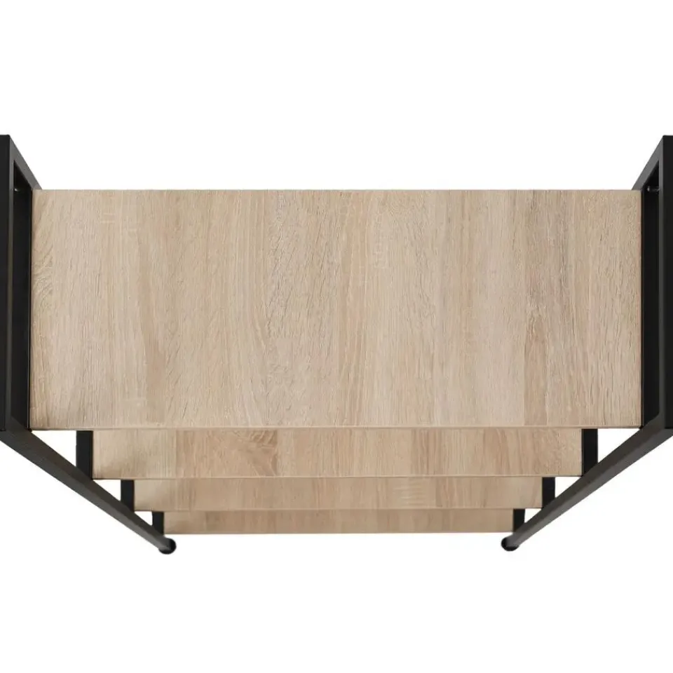 De rustieke wandkast Leeds overtuigt door zijn moderne, industriele stijl. Het stalen frame en de houten planken vormen een aantrekkelijk contrast, dit creëert sfeer in elke ruimte. De vier niveaus van het open meubel zijn zowel een presentatieruimte voor persoonlijke spullen als een trendy opbergruimte voor boeken of kantoorartikelen. De stabiele kast met in hoogte verstelbare poten onderscheidt zich naast een grote stabiliteit en een goede veerkracht door onderhoudsvriendelijk gebruik – een echte blikvanger in elk interieur! Let op: Montage vereist