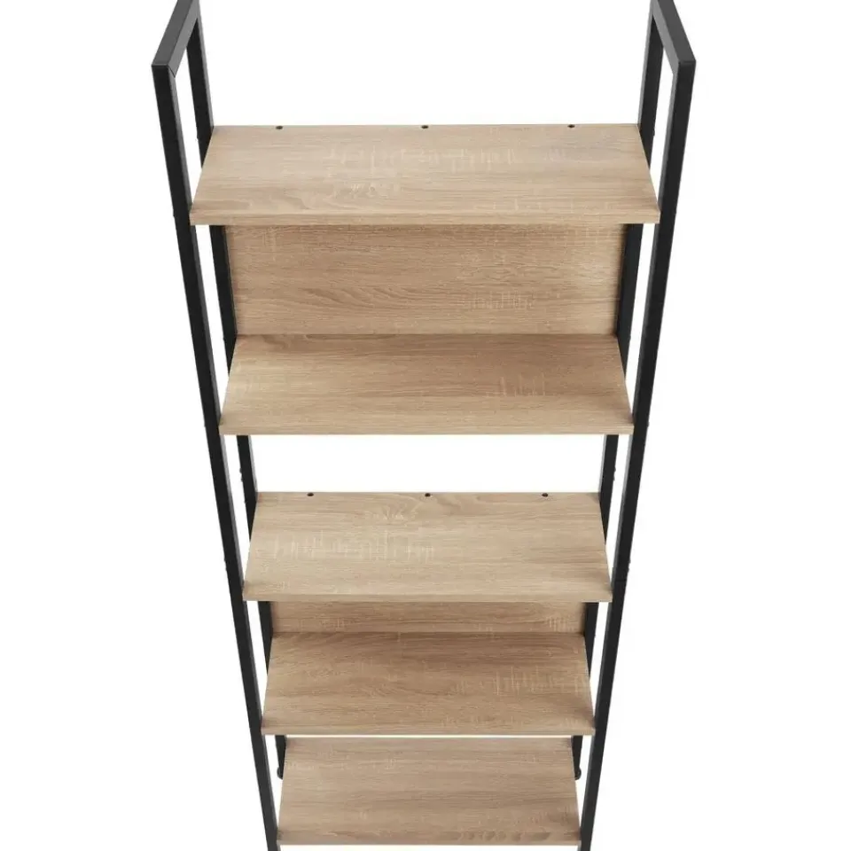Met het functionele wandrek Westport van tectake voeg je een chique presentatieruimte toe aan je interieur. De karakteristieke uitstraling van de onderhoudsvriendelijke constructie is door de minimalistische vormgeving met industriële uitstraling een opvallende symbiose van hout en staal. De vijf niveaus zijn stevig verbonden met het gepoedercoate frame, waardoor de totale constructie een hoge draagkracht heeft. Vier in hoogte verstelbare kunststof poten en een betrouwbare kantelbeveiliging zorgen ervoor dat alle favoriete items op dit modieuze meubel altijd in evenwicht blijven. Let op: Montage vereist