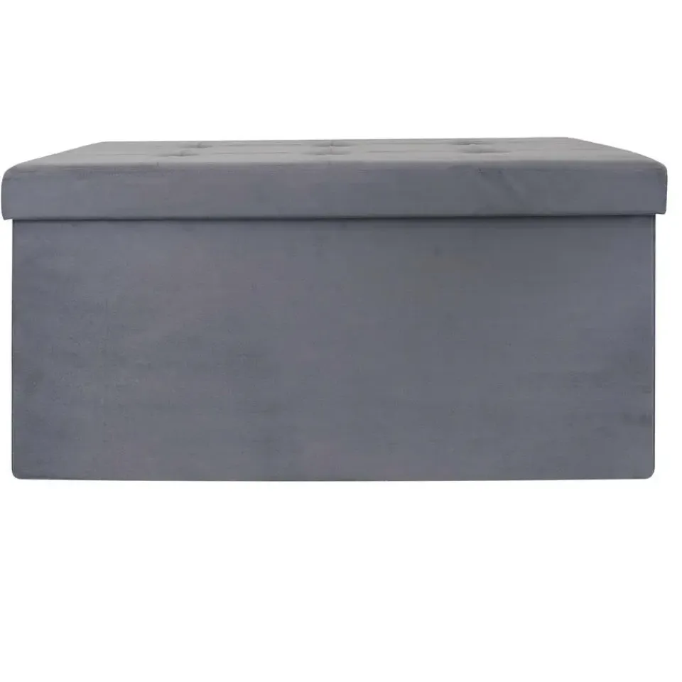 Home Deco poef Chique heeft een fijne opbergruimte waar je ook op kunt zitten. Deze opvouwbare poef, ook wel een hocker genoemd is ideaal voor elk huishouden. De poef heeft een afneembare deksel, geeft je extra opbergruimte en is tevens te gebruiken als voetenbankje. Bespaar ruimte door bijvoorbeeld speelgoed of dekens erin op te bergen of de poef als zitplek te gebruiken. Een mooie aanvulling voor in huis. Kleur: grijs. Materiaal: polyester en mdf. Afmeting: ca. 76 x 38 cm.